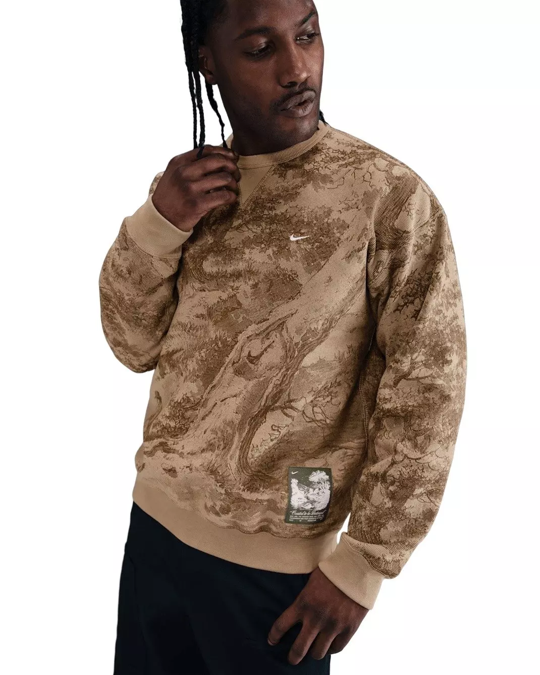 Warm and structured, this Nike Men's Solo Swoosh BB Fleece Graphic Crew is crafted with heavyweight brushed fleece that feels plush on the inside and smooth on the outside, bringing a touch of luxury to your casual, cool-weather layers. Its loose fit feels roomy through the body.Features