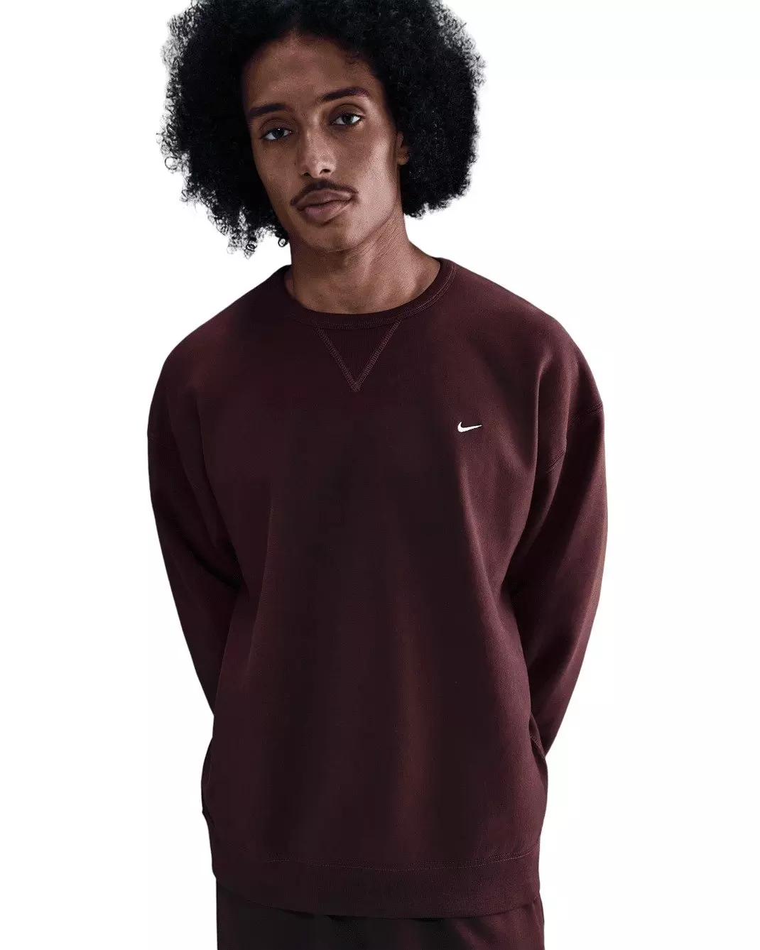 Warm and structured, this Nike Men's Solo Swoosh Fleece Crew is crafted with heavyweight brushed fleece that feels plush on the inside and smooth on the outside, bringing a touch of luxury to your casual, cool-weather layers. The loose fit feels roomy through the body.Features