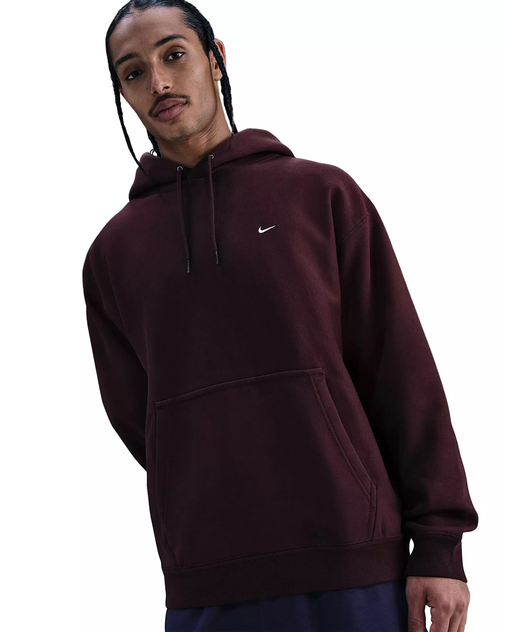 Celebrate the power and simplicity of the Swoosh. This warm, brushed fleece Nike Men's Solo Swoosh Fleece Pullover Hoodie is made with some extra room through the shoulders, chest and body for easy comfort and laid-back, nostalgic style. Thick, stretchy ribbing at the cuffs and hem help hold the hoodie in place when you move and seal in your warmth when conditions cool. Our Solo Swoosh is embroidered on the left chest to keep your look clean and effortless.Features