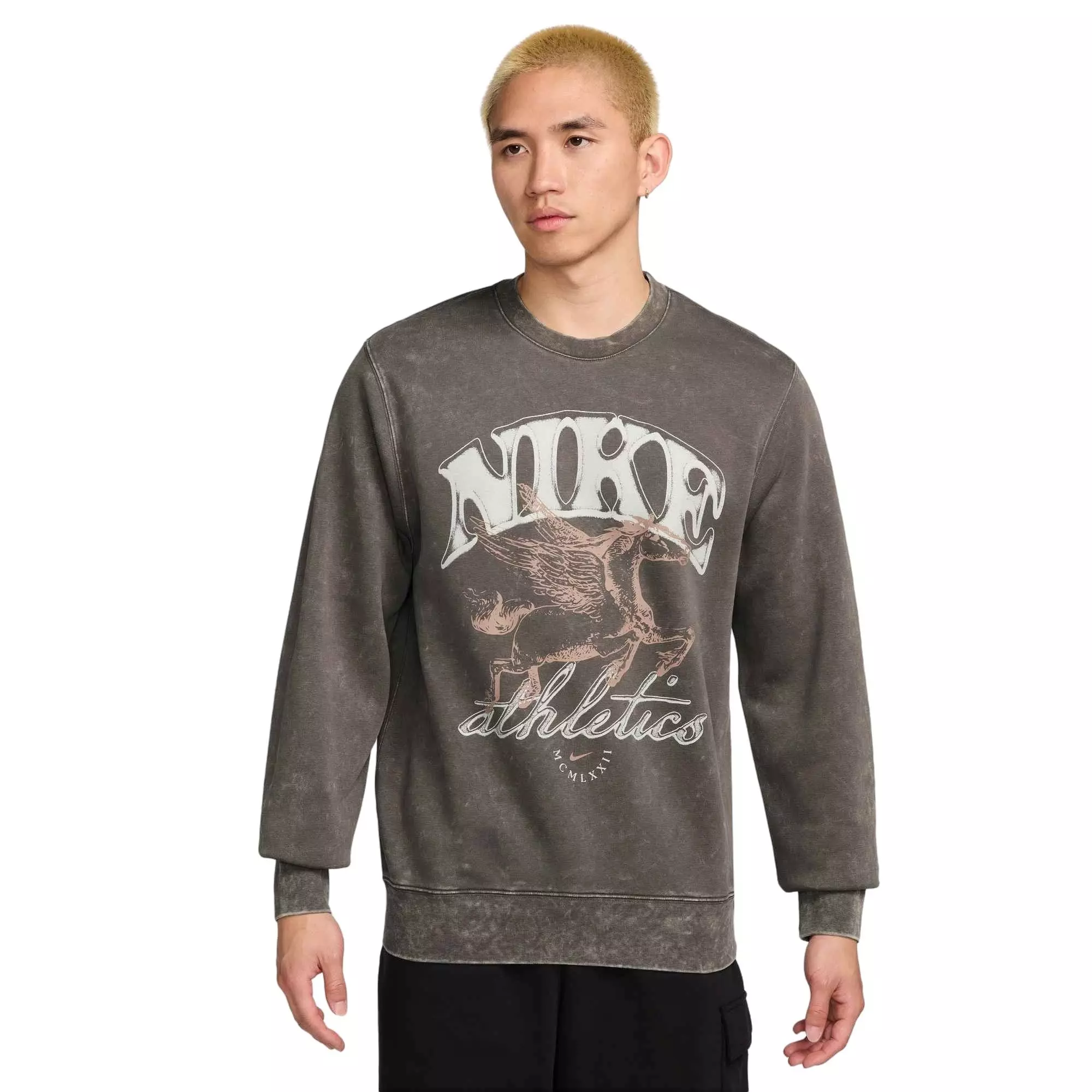 Vintage vibes and worn-in softness come together with this snow-washed grey Nike Men's Sportswear Club BB Fleece Crew. Our midweight brushed fleece feels extra soft on the inside and smooth on the outside, helping you stay cozy while keeping its structured shape.Features