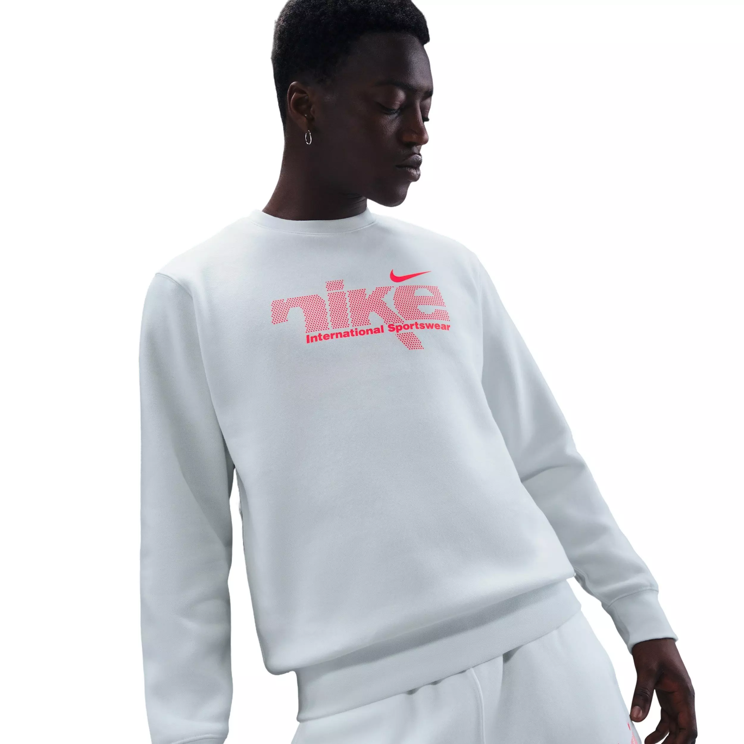 The Nike Men's Sportswear Club BB Fleece Swoosh Sport Crew is made with midweight brushed fleece that feels extra soft on the inside and smooth on the outside. The fabric holds its shape whether you're moving or relaxing, providing dependable comfort.