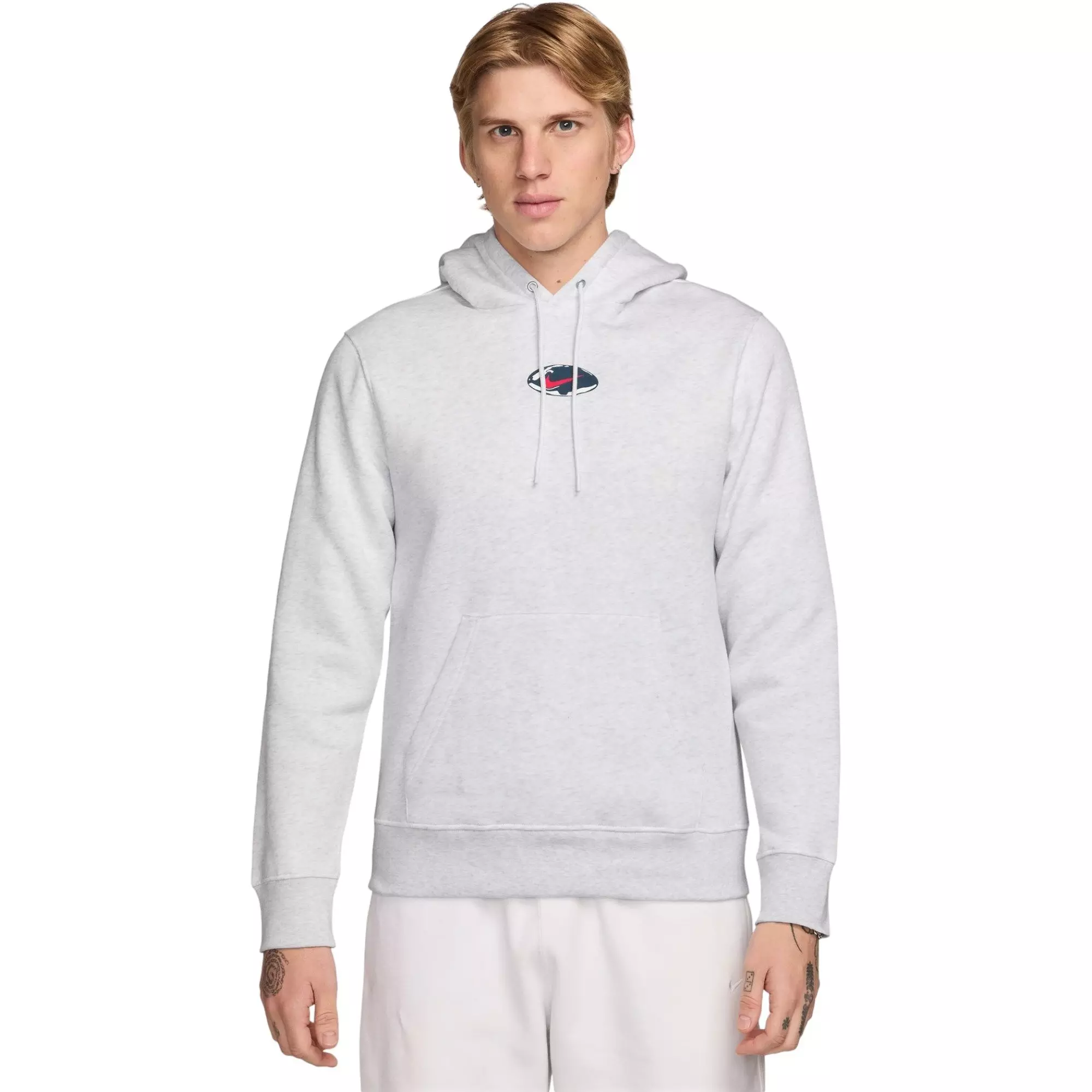 Clean meets casual with the Nike Men's Sportswear Club Fleece Pullover Hoodie-Grey, made for easy comfort every day. Midweight brushed fleece feels soft inside and smooth outside, keeping you cozy while holding its shape. The standard fit sits relaxed through the body for simple layering.