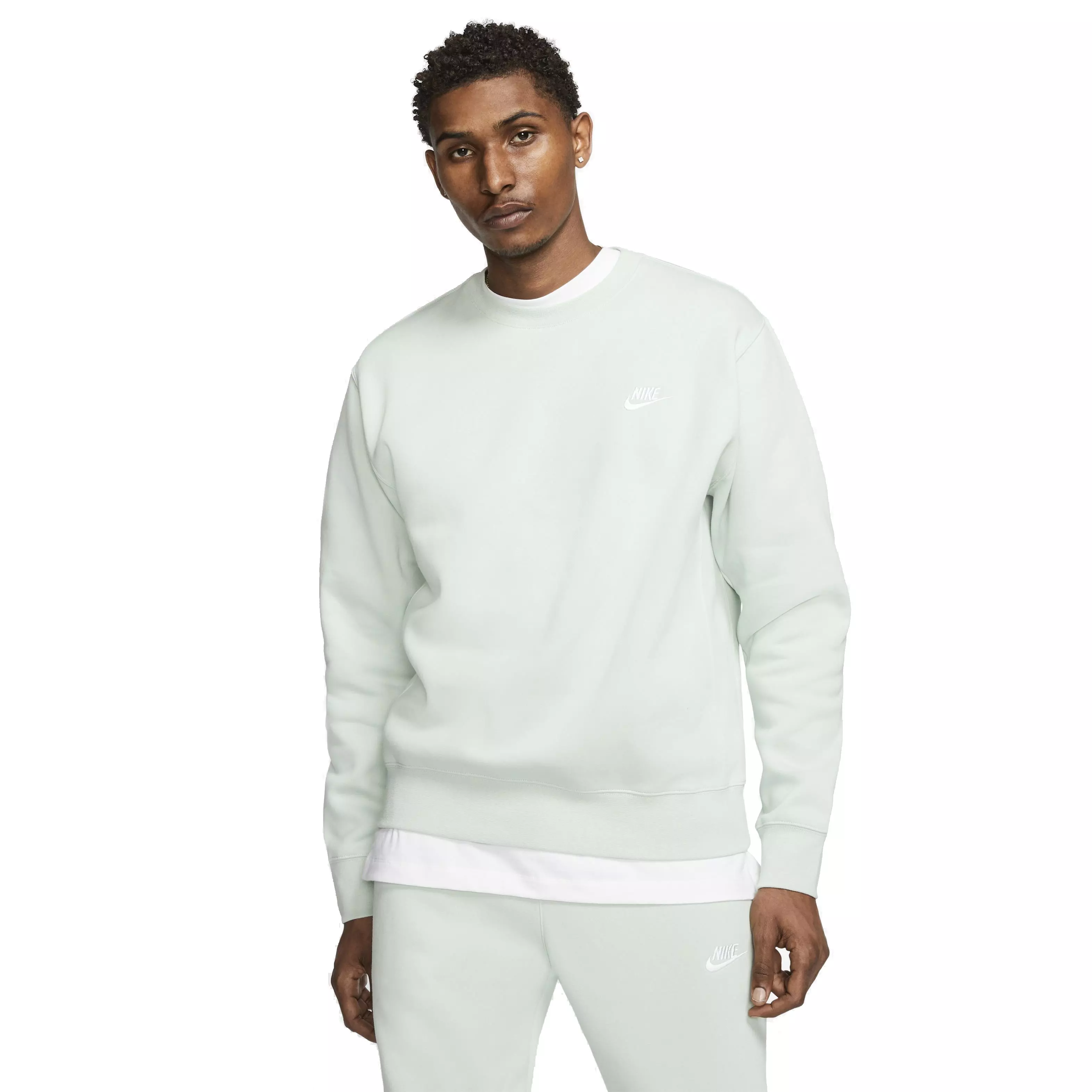 The Nike Men's Sportswear Club Sweatshirt features a classic embroidered logo on the left chest. This closet staple showcases a clean silhouette with reinforced stitching.
