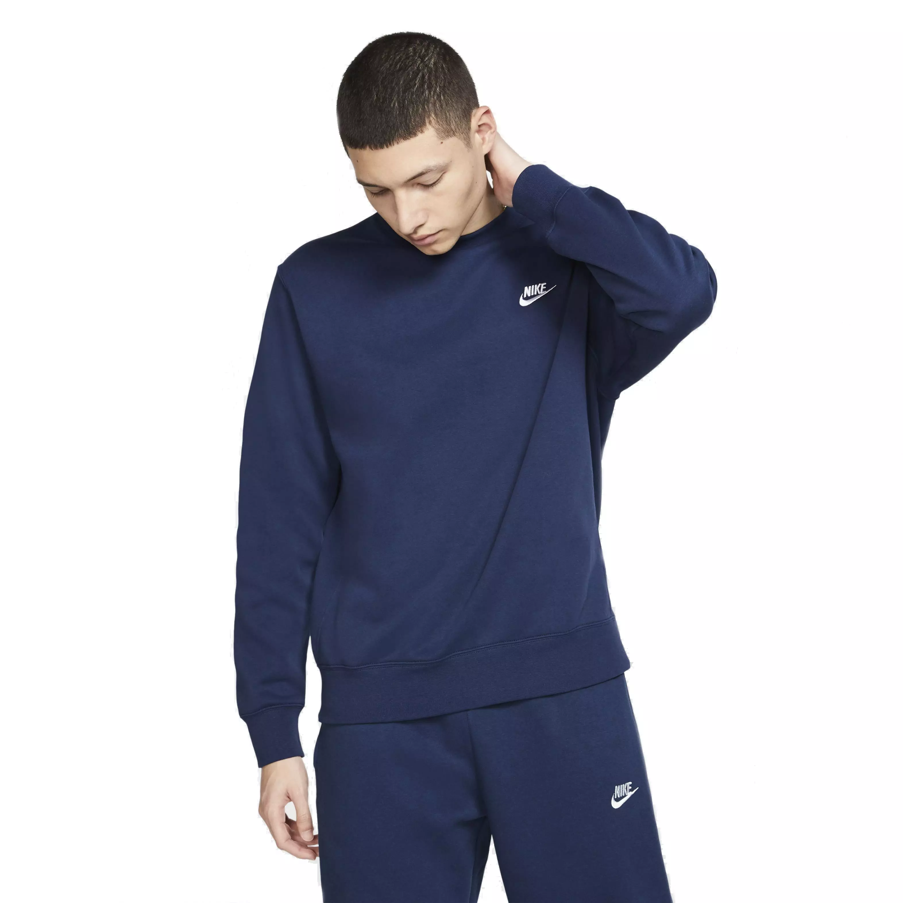 The Nike Men's Sportswear Club Sweatshirt features a classic embroidered logo on the left chest. This closet staple showcases a clean silhouette with reinforced stitching.