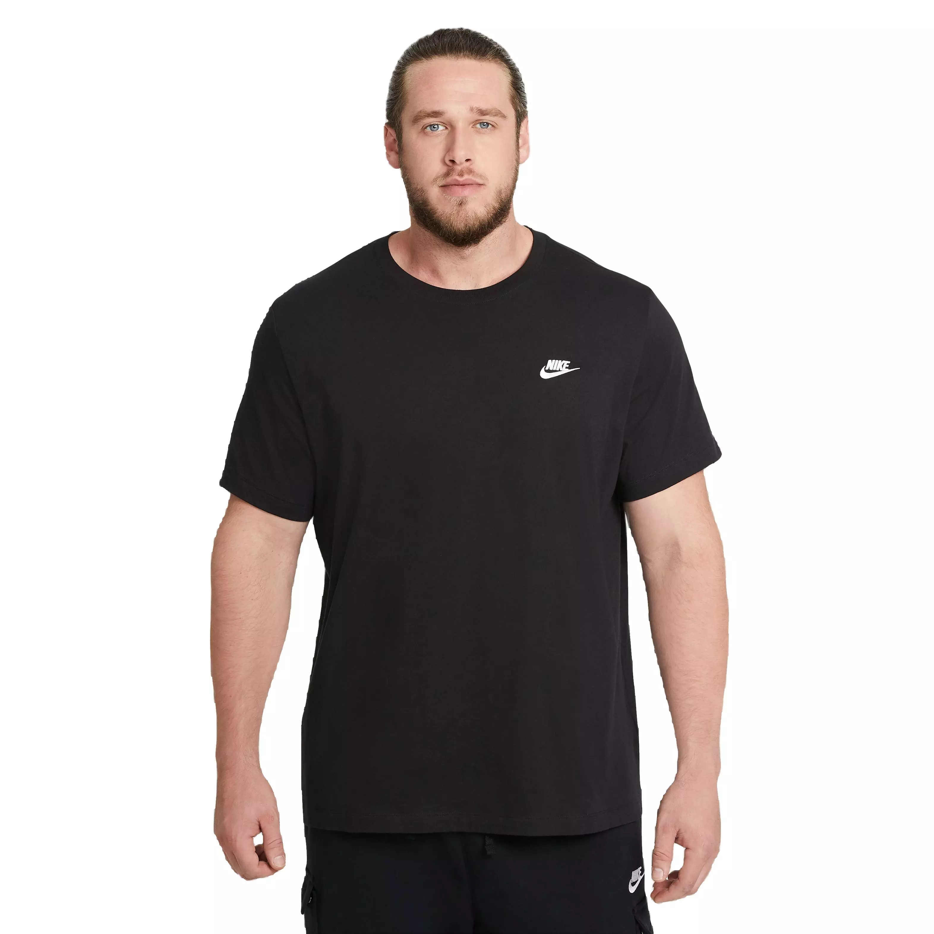 The Nike Men's Sportswear Club Tee boasts soft cotton jersey, offering day-long comfort and a classic look. An embroidered logo adorns the chest, merging style with simplicity for a wardrobe staple.