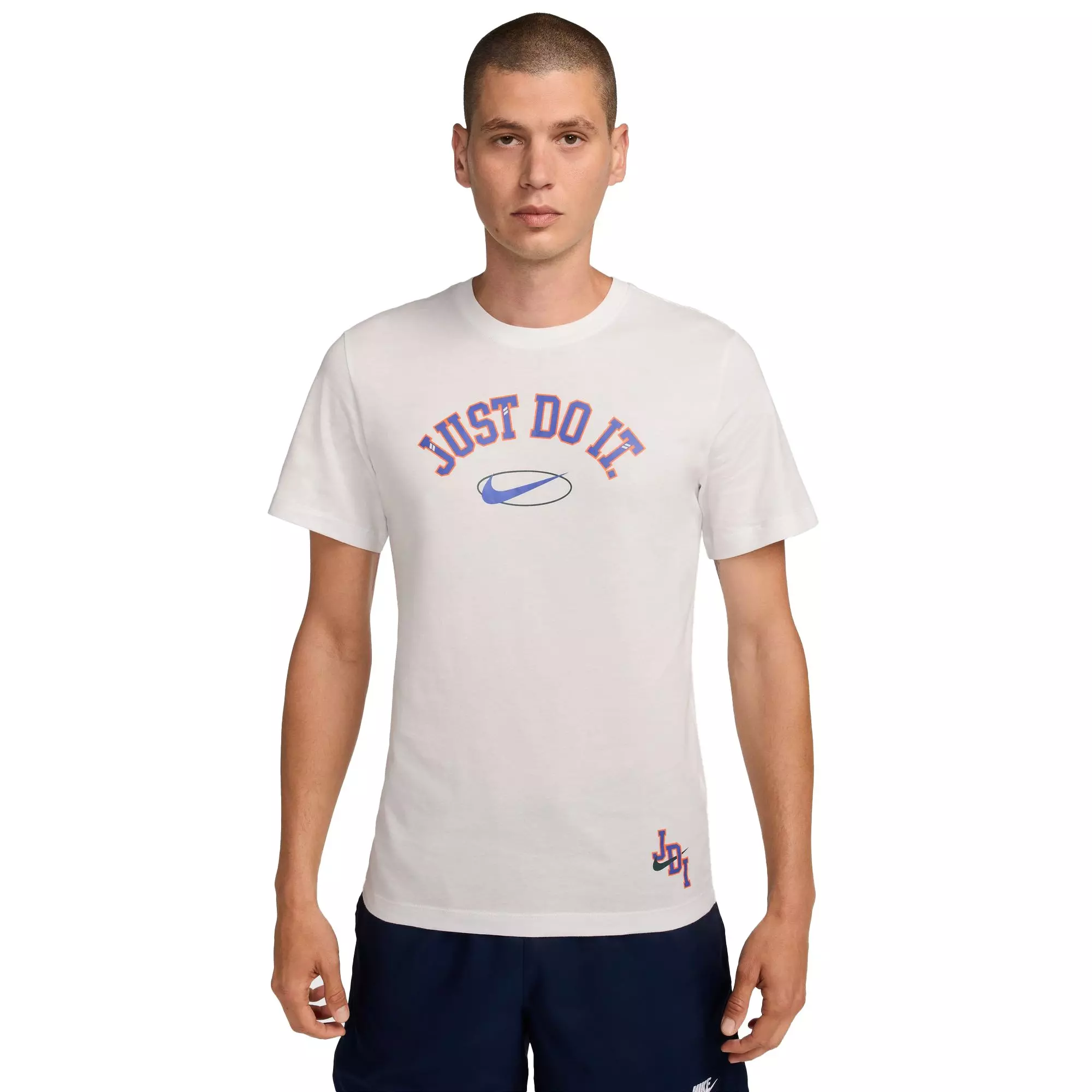 The Nike Men's Sportswear JDI Tee delivers a timeless classic look with a relaxed fit through the body that layers easily over shirts and under jackets. Its everyday cotton feels soft and comfortable, ensuring reliable ease during everyday wear.