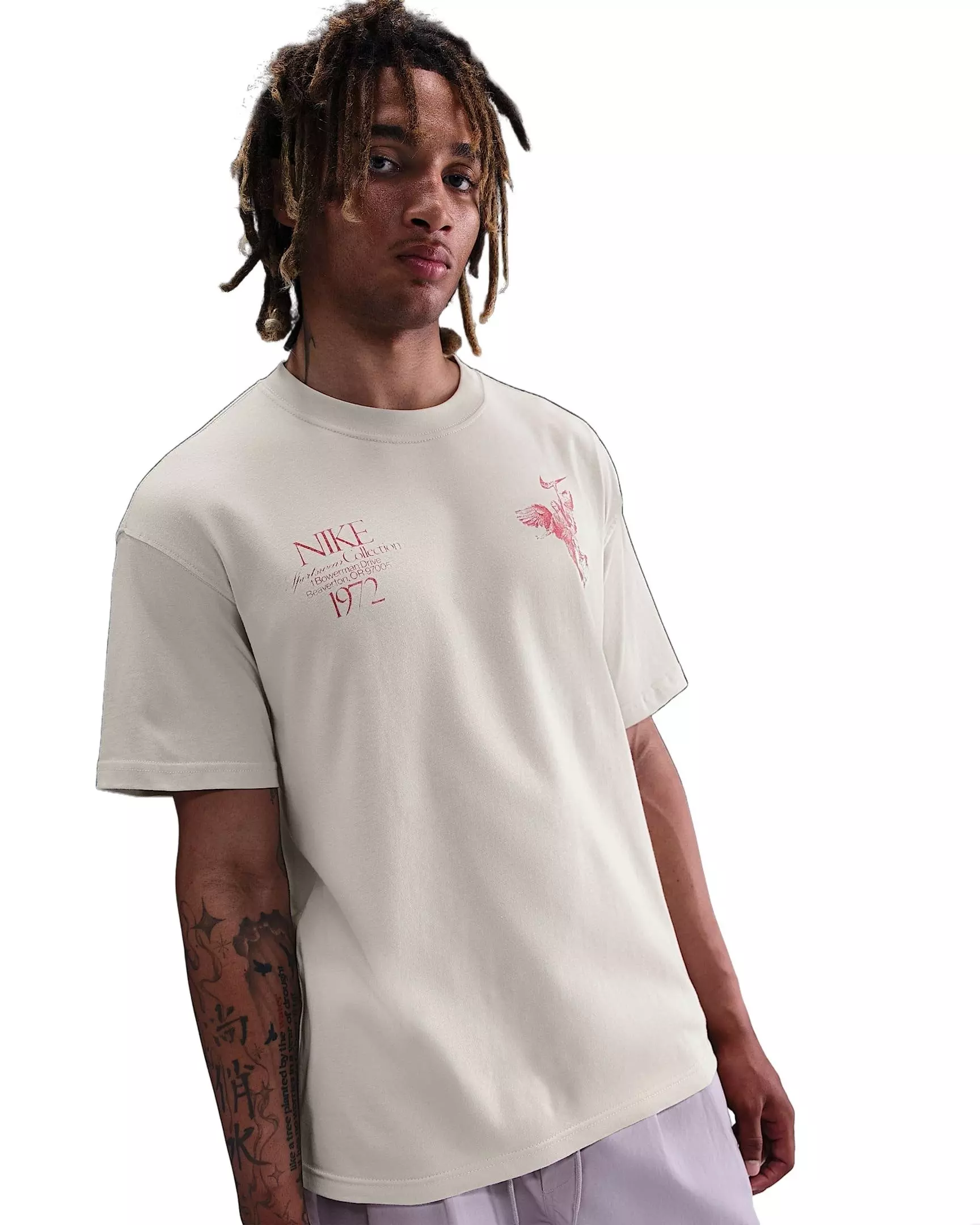 Elevate your essentials with this Nike Men's Sportswear Max90 OC Wings Victory T-Shirt. It has a loose fit with dropped shoulders, longer sleeves and a roomy feel through the body and hips for a casual look. The midweight cotton feels soft and slightly structured for durable, daily comfort.Features