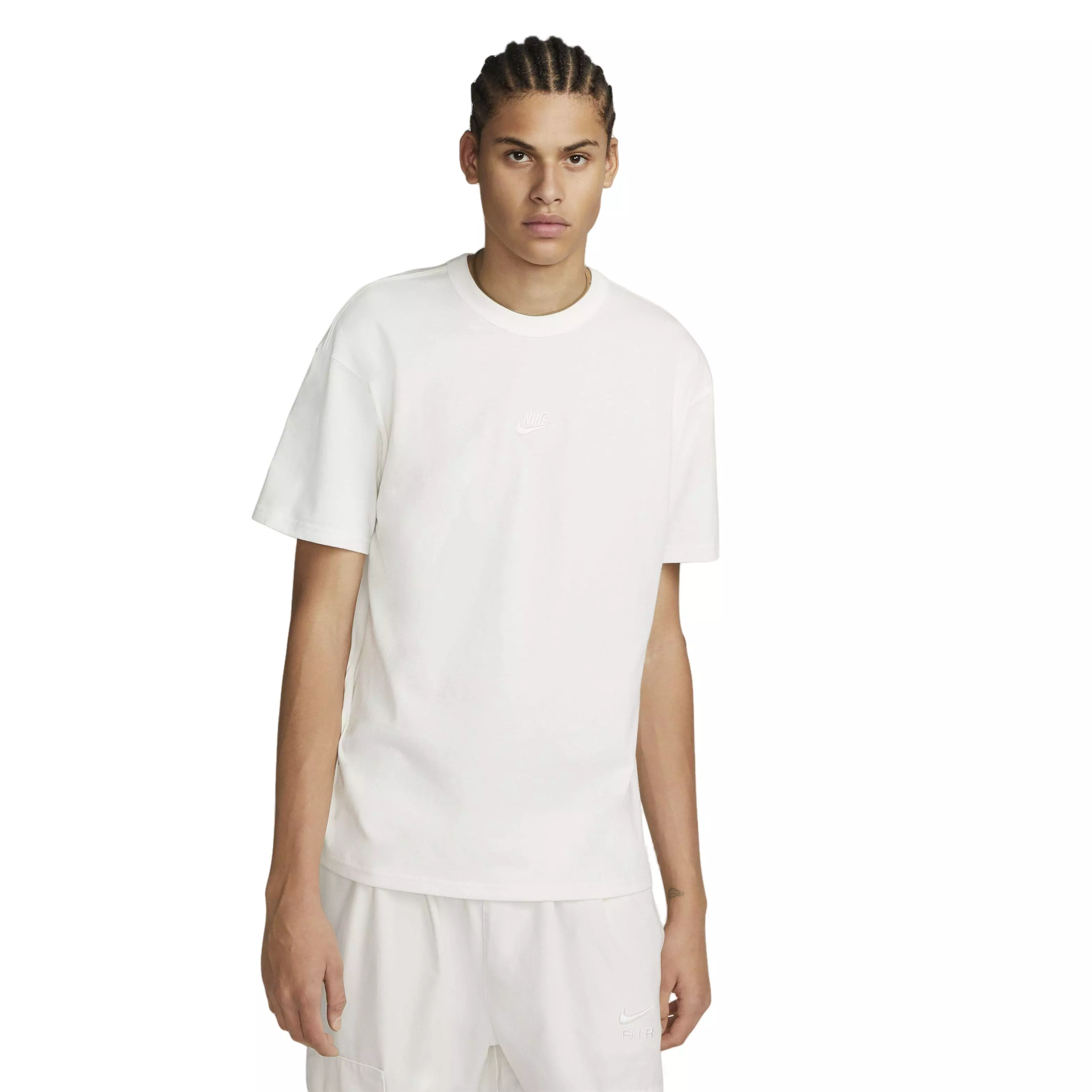 The Nike Men's Sportswear Premium Essential SUST T-Shirt-Sail has a loose fit for a carefree, comfortable look. Its heavyweight organic cotton fabric feels thick and soft. This product is made with at least 75% organic cotton fibers.Features