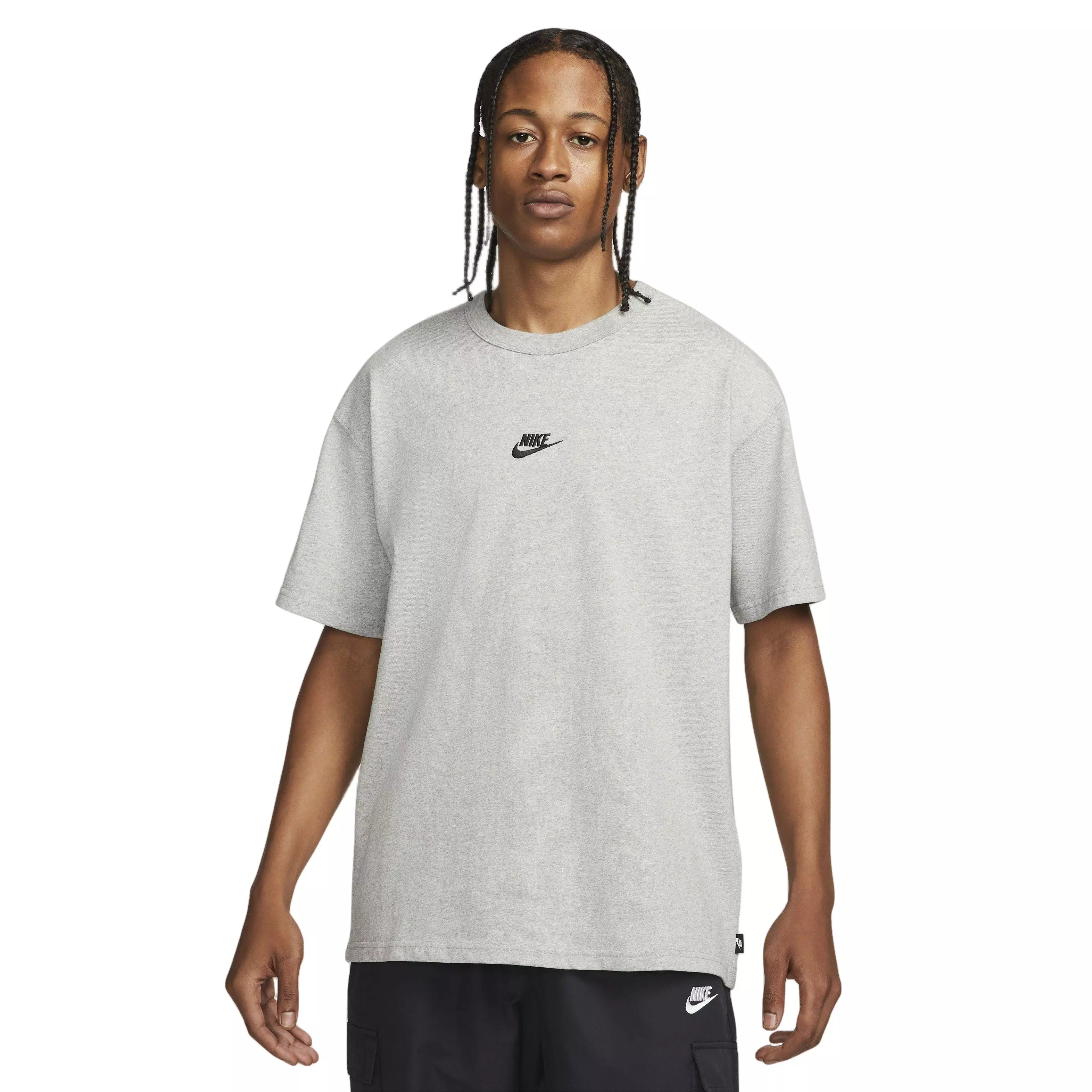 This grey Nike Men's Sportswear Premium Essential T-Shirt has a loose fit for a carefree, comfortable look. Its heavyweight organic cotton fabric feels thick and soft. This product is made with at least 75% organic cotton fibers.