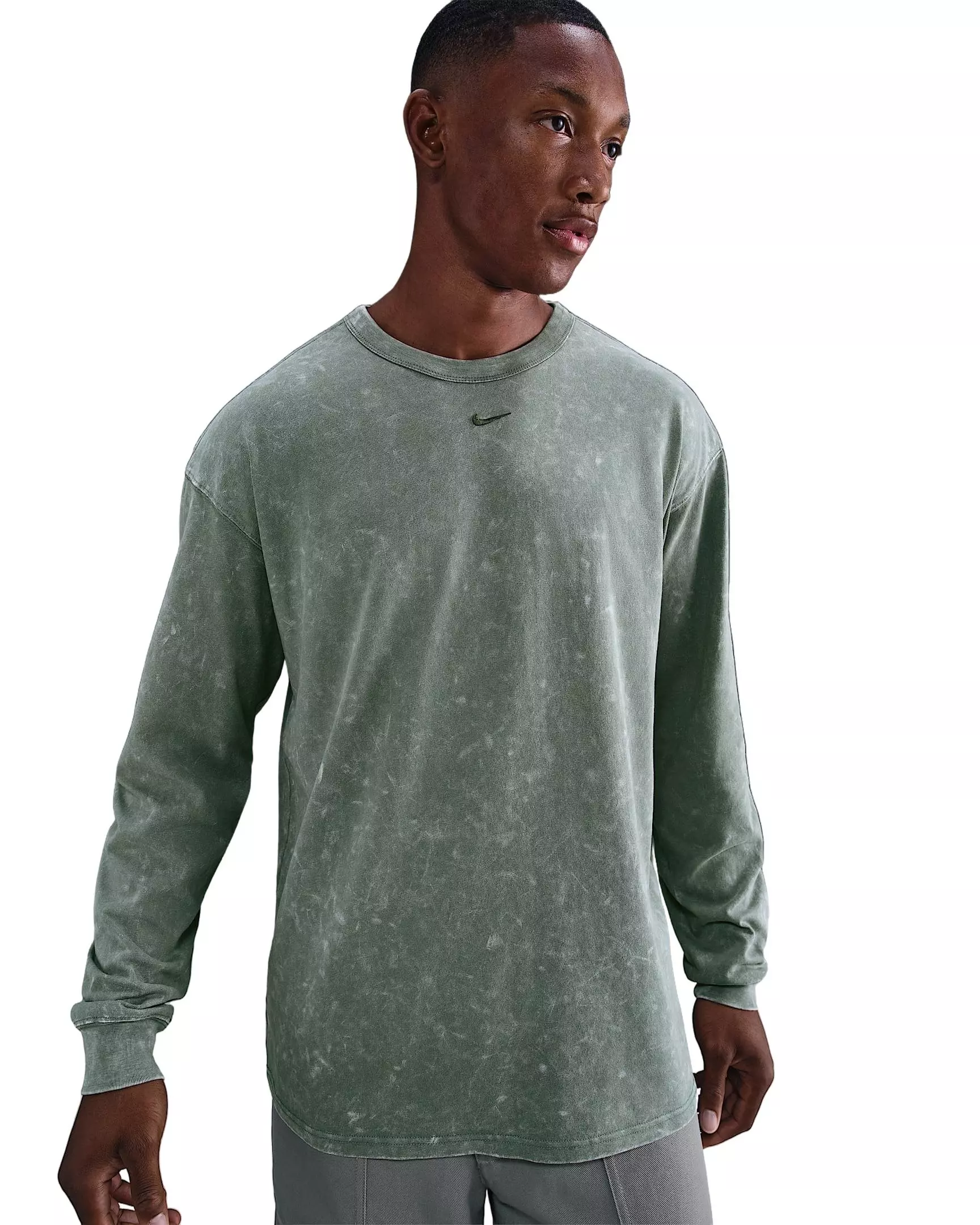 Clean and classic, this green Nike Men's Sportswear Premium Essentials Long-Sleeve T-Shirt is roomy through the body. Heavyweight cotton has a textured feel and a structured look for durable, daily comfort.