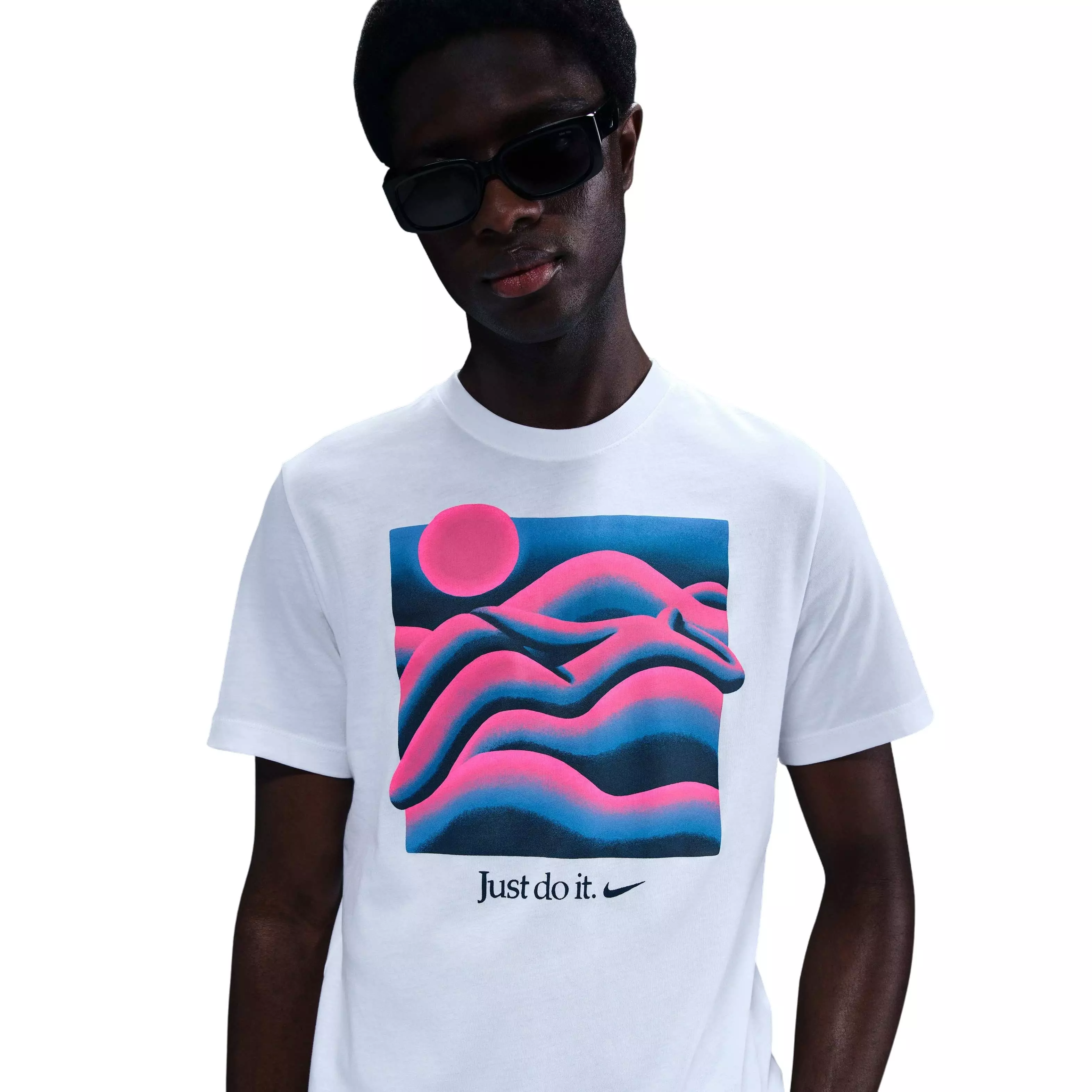 Nothing hits like a classic tee. This Nike Men's Sportswear Premium OC Sustainability 2 Tee features artwork by painter illustrator and muralist Jocelyn Tsaih. It's relaxed through the body for easy layering. Lightweight cotton feels soft and comfortable for everyday wear.Features
