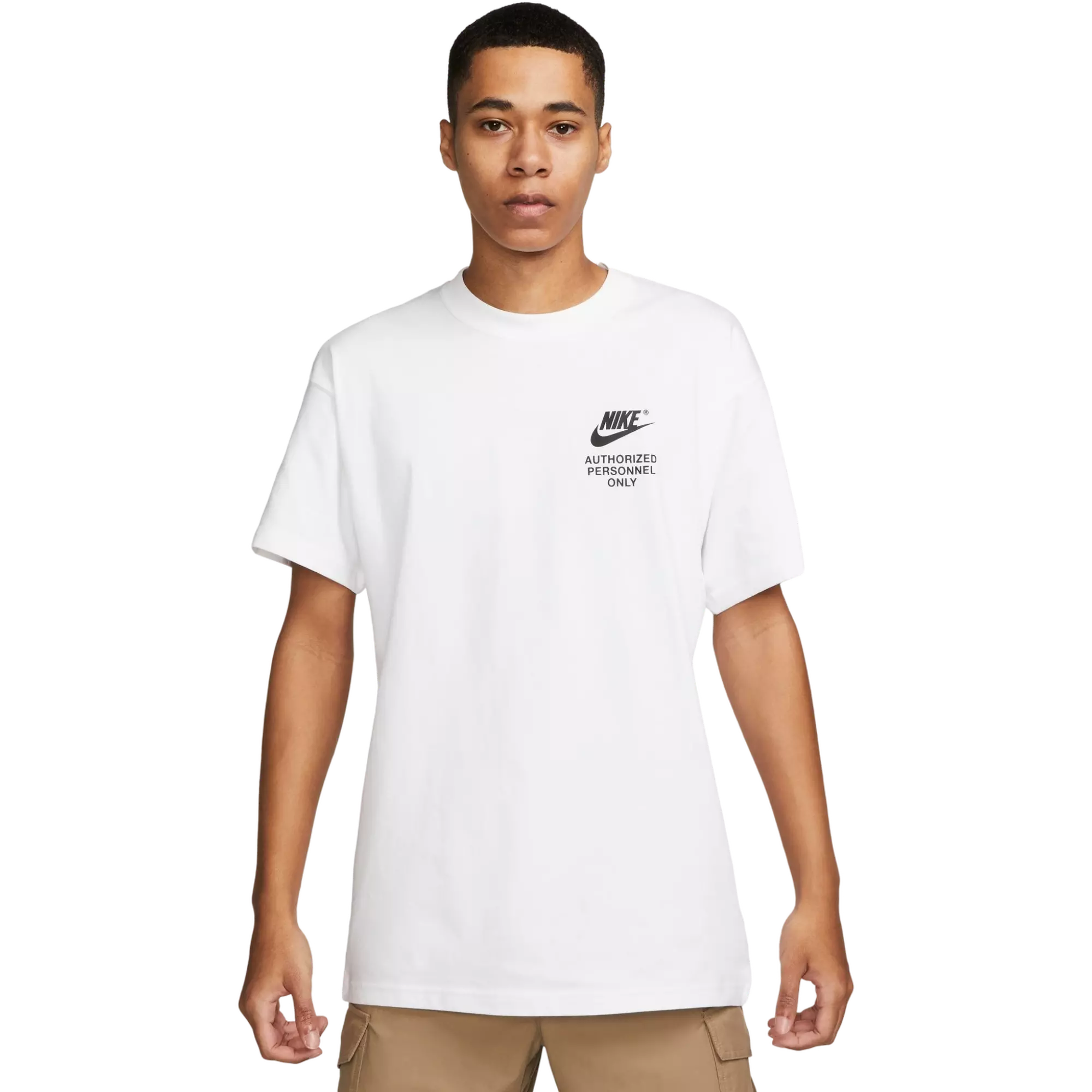 An exclusive construction and design, the Nike Men's Sportswear Relaxed Tee is made with our heavyweight cotton jersey and Max90 fit for a thick, roomy feel. Printed details are inspired by the hard-to-get apparel designed for NBA players and staff.
