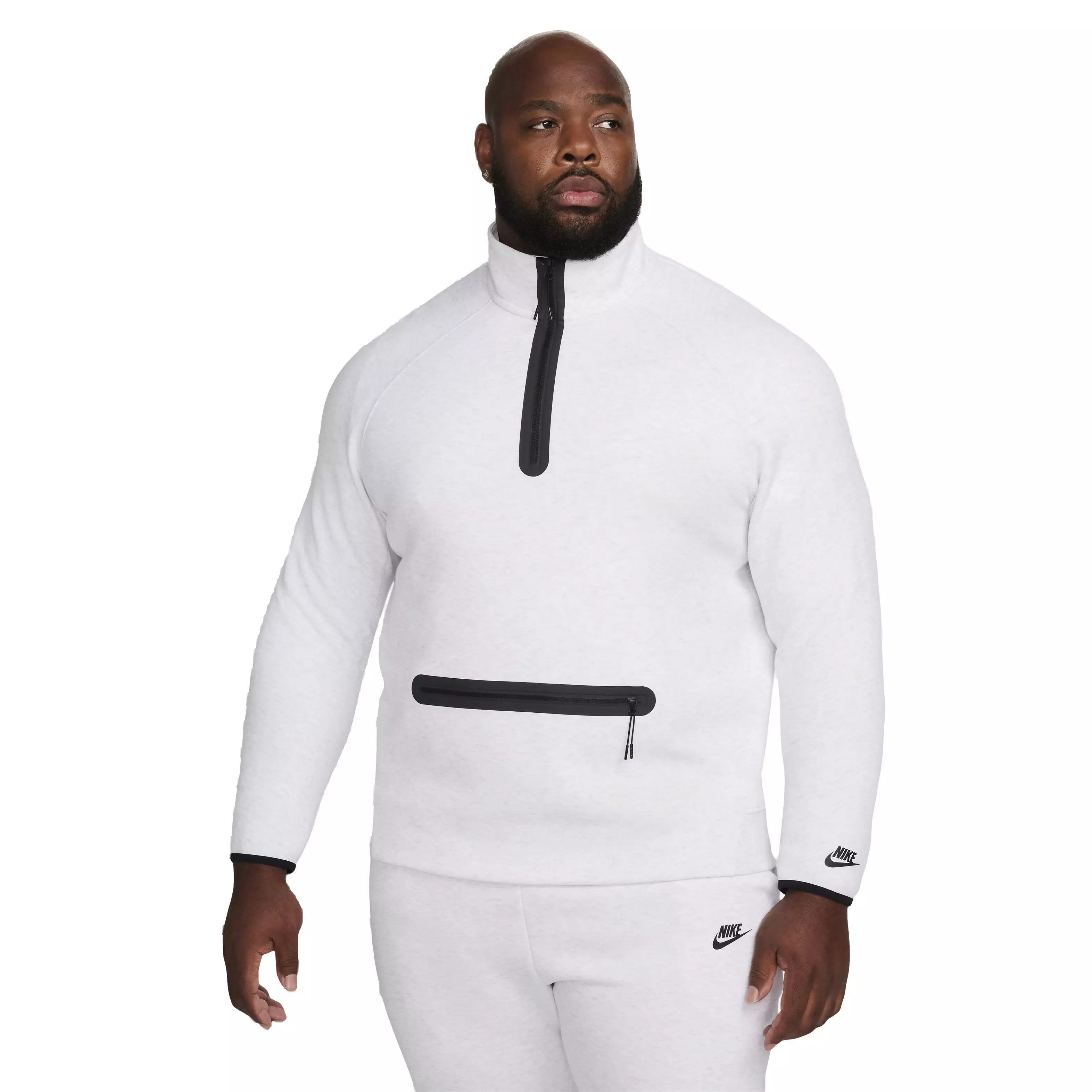 Ready for a night on the town or an evening in, this sleek Nike Men's Sportswear Tech Fleece 1/2 Zip Sweatshirt - White injects a dose of polished comfort into your daily wardrobe. Our premium, smooth-on-both-sides fleece feels warmer and softer than ever, while keeping the same lightweight build you love. The relaxed fit lets you throw it on over a tee and under a jacket when the conditions call for it.Features