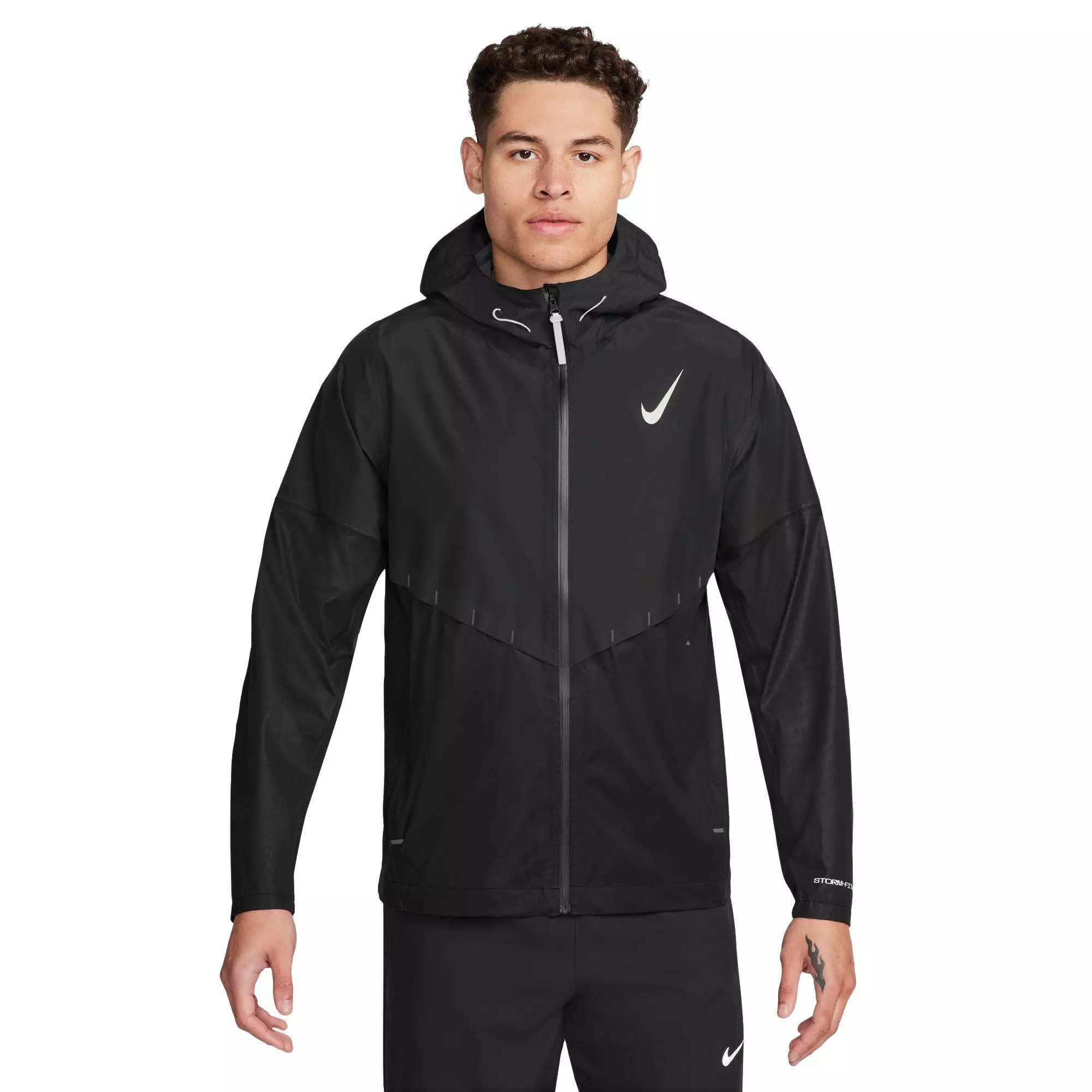 Chase your miles in all conditions with the Nike Men's Storm-FIT Aerogami Aeroswift Breathable Running Jacket, built to block wind and rain while staying light and fast. Waterproof, windproof fabric helps shield you from the elements, while adaptive Aerogami ventilation opens as you heat up to release excess warmth.