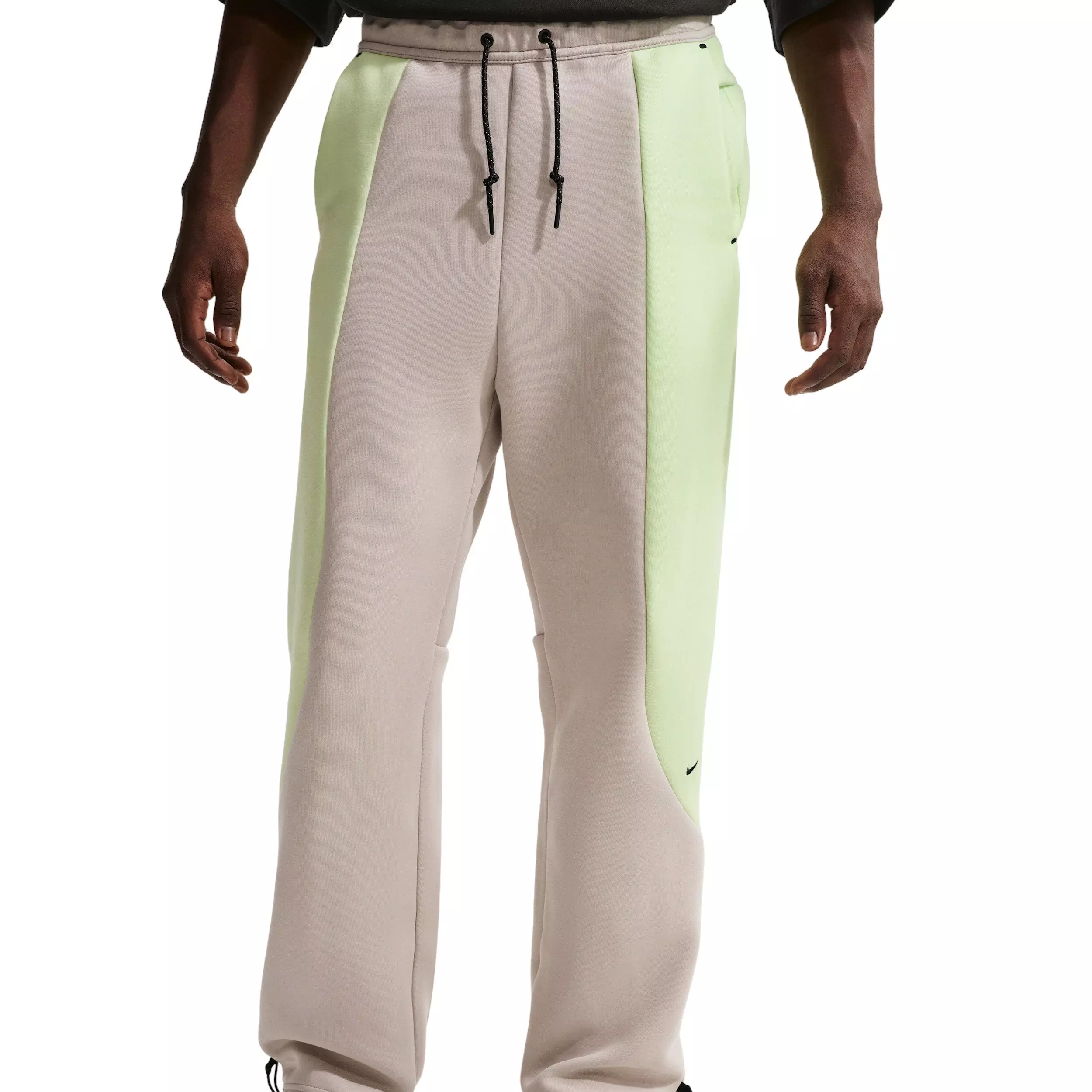 Our Nike Men's Tech Color-Block Open Hem Fleece Pants offer an injection of premium comfort with our smooth-on-both-sides fleece. They have a relaxed fit and an open hem with bungees to switch up the fit around your shoes.Features