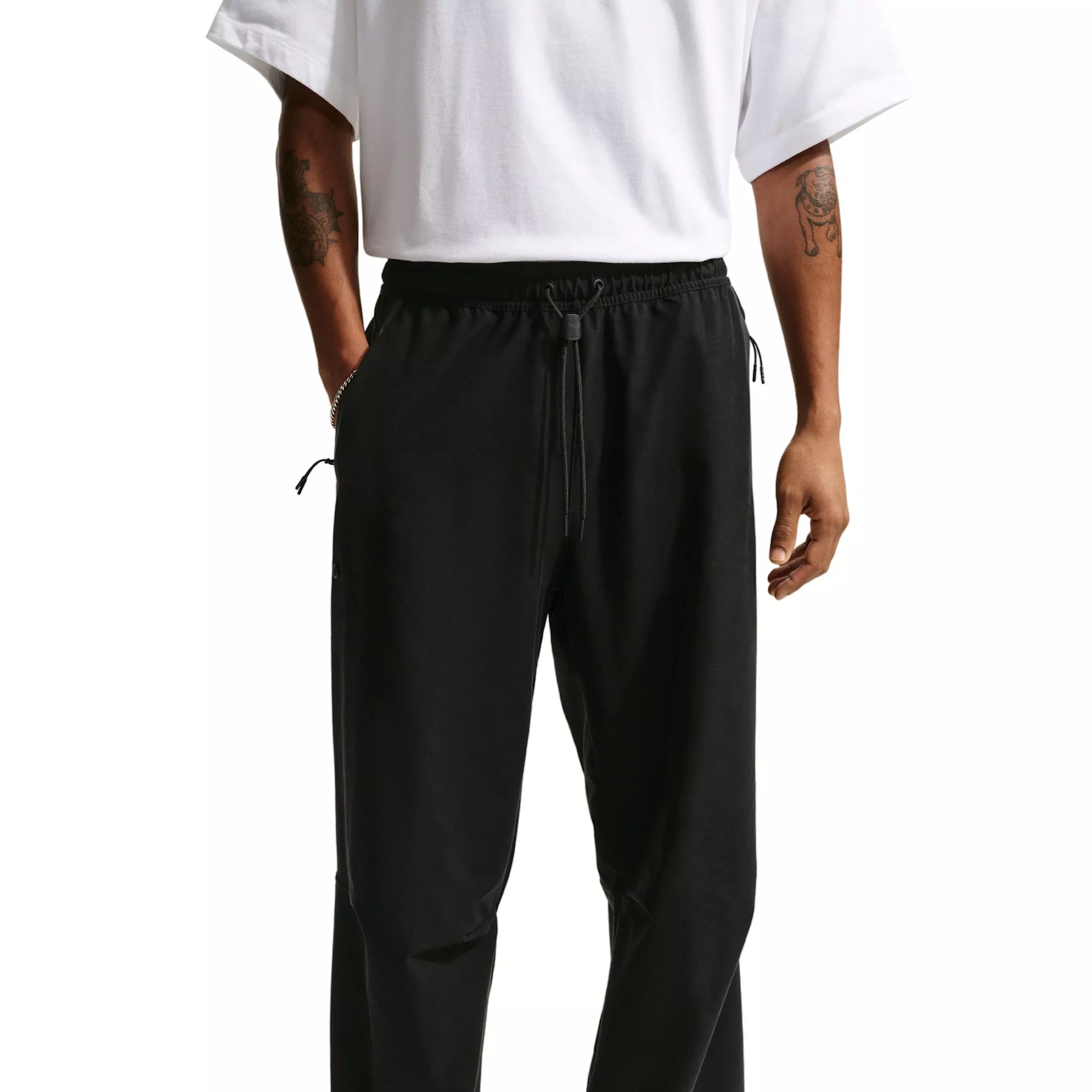 Designed to take on the city, these Nike Men's Tech Dri-FIT Shori Knit OS Pants are crafted with our midweight, tightly knit fabric that's smooth, stretchy and sweat wicking. They have a roomy fit with articulation at the knees for ease of movement and a distinct Nike Tech aesthetic. Bungees at the ankles let you switch up the fit around your shoes.Features