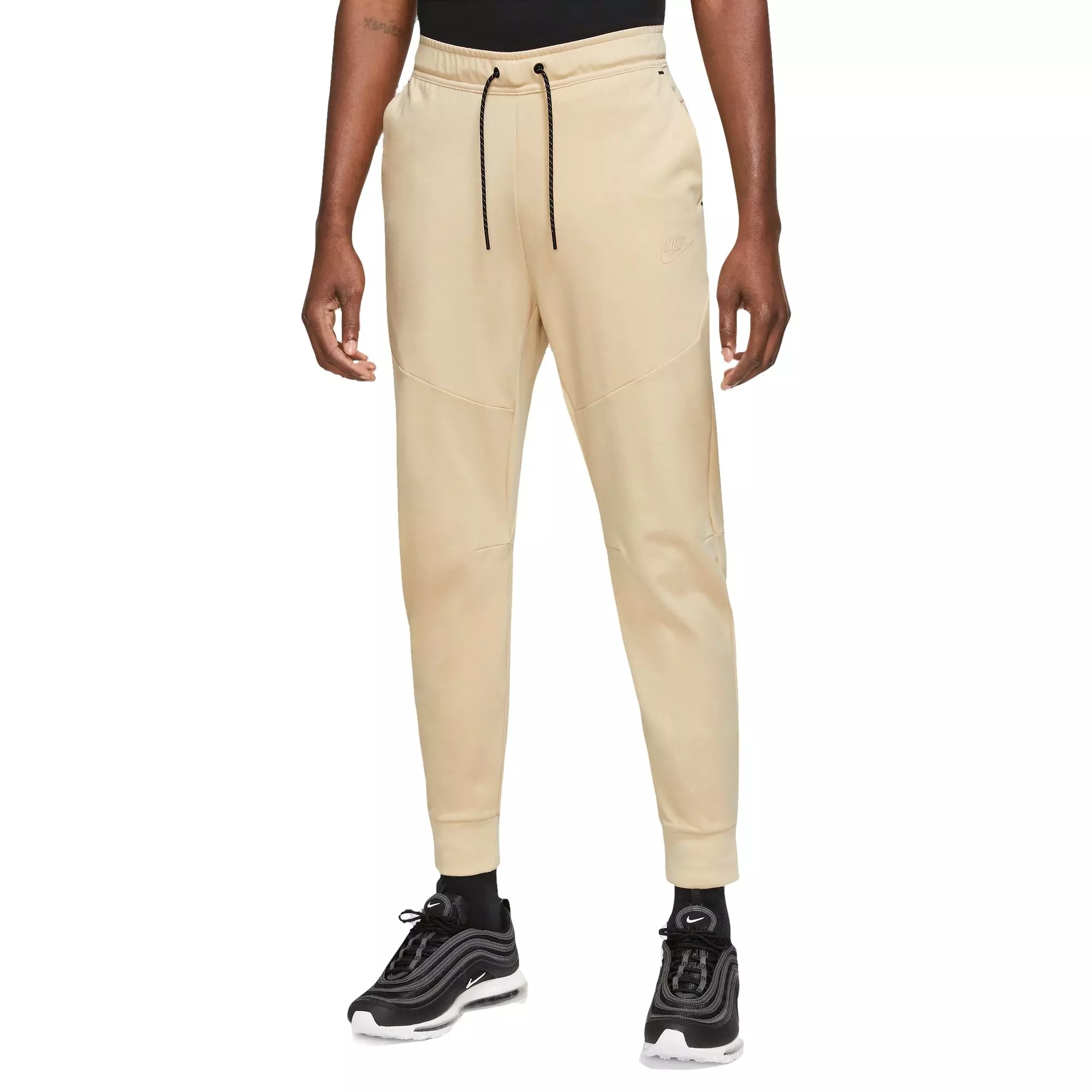 Perfect for those laid-back warm weather days, our classic fit yellow Nike Men's Tech Essentials Lightweight Joggers take their style cues from Tech Fleece. Unlike the insulating warmth of traditional Tech Fleece, however, these are made with a lightweight, stretchy knit fabric perfect for warmer months. The relaxed fit through the seat and thighs tapers down to the form-fitting, ribbed ankles for a tailored look that shows off your shoes.Features
