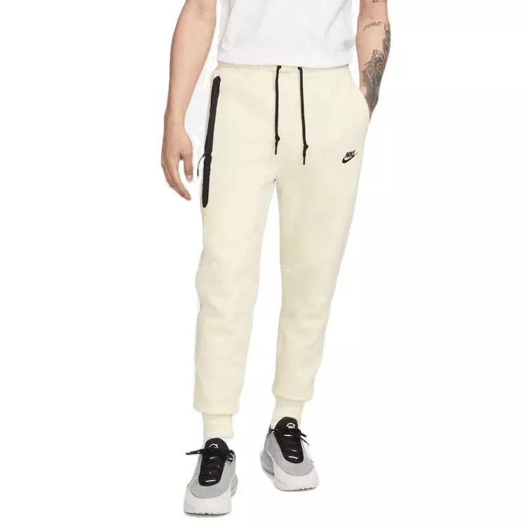 A comfy weight for cooler weather and lounging, these Nike Men's Tech Fleece Jogger - Coconut Milk feature our slimmer fit, perfect for everyday wear. Slightly more trim through the thigh, this tapered design narrows at the knee to give you a comfortable feel without losing the clean, tailored look you love. Tall ribbed cuffs pair with a zippered pocket on the right leg for secure small-item storage and that signature Tech Fleece look.