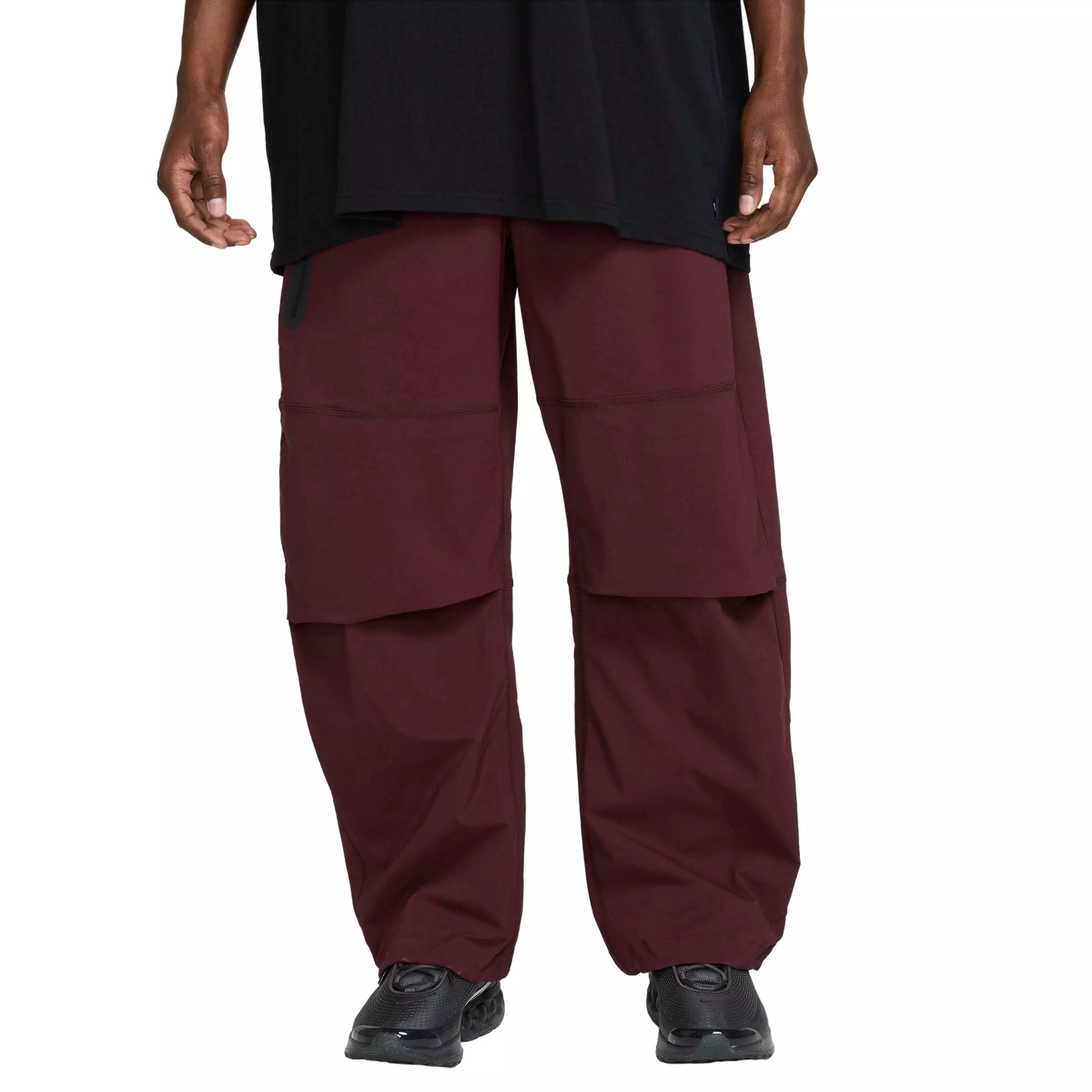 Crafted with stretchy woven material, these Nike Men's Tech Woven Oversized Pants offer you ease of movement and adjustability. The wide-leg cut is paired with bungee locks at the ankles that let you switch up the fit.Features