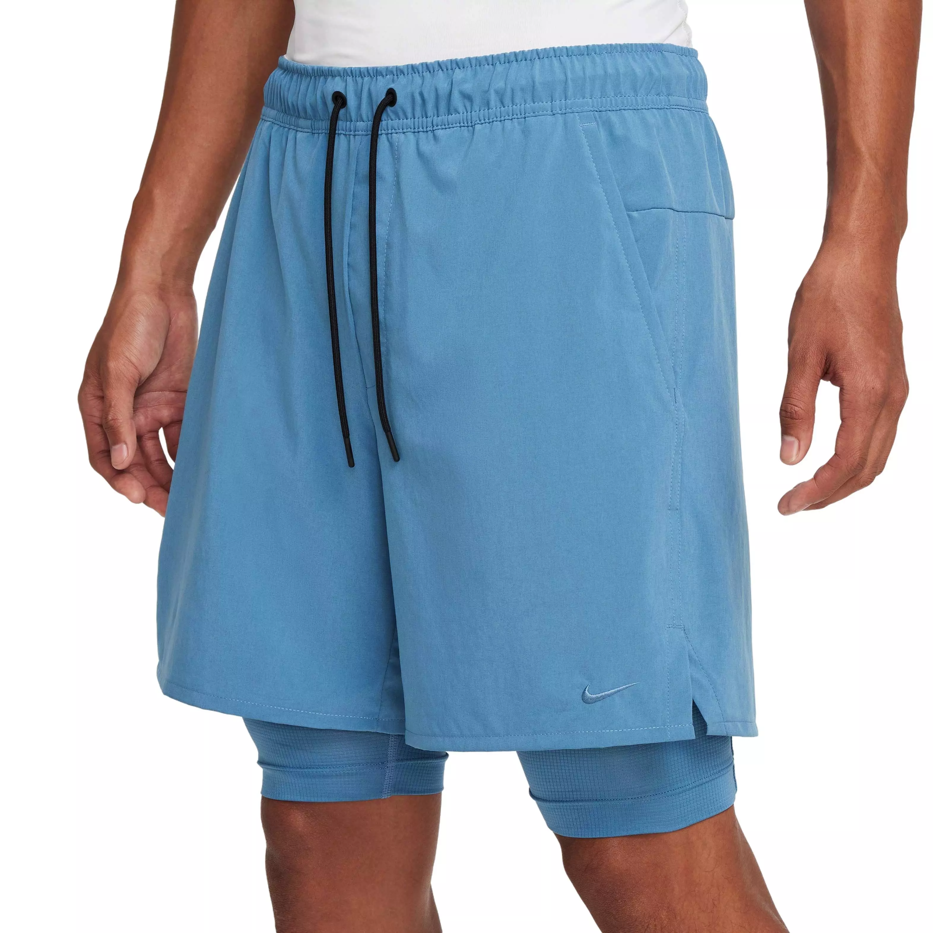 Nike Men's Unlimited Dri-FIT 2-in-1 7" Versatile Shorts combine sweat-wicking Dri-FIT fabric with a smooth, stretchy outer layer that moves with every stride. An integrated, tight inner liner supports muscle engagement during intense sessions and yoga flows.