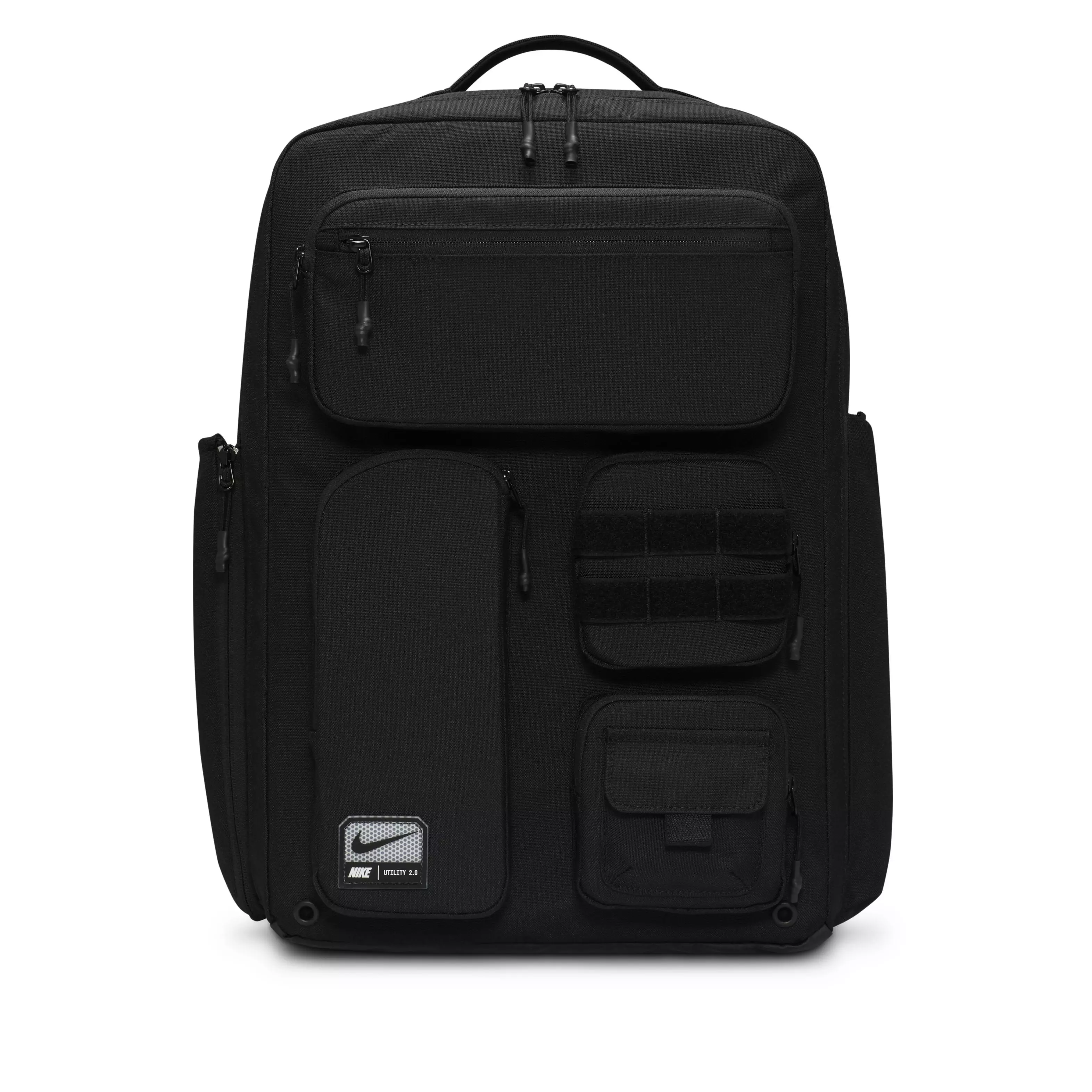 Meet the Nike Men's Utility Elite Backpack -Black, built to keep your day organized. A smart partition in the main compartment separates dirty shoes or sweaty gear from clean items, while a secure zip pocket protects your laptop on the go.An insulated side pocket keeps drinks at temperature, and the padded back panel with a luggage pass-through makes commuting and travel easier. Thoughtful organization and easy-access pockets help you move efficiently from gym to work to weekend without compromising comfort or convenience.