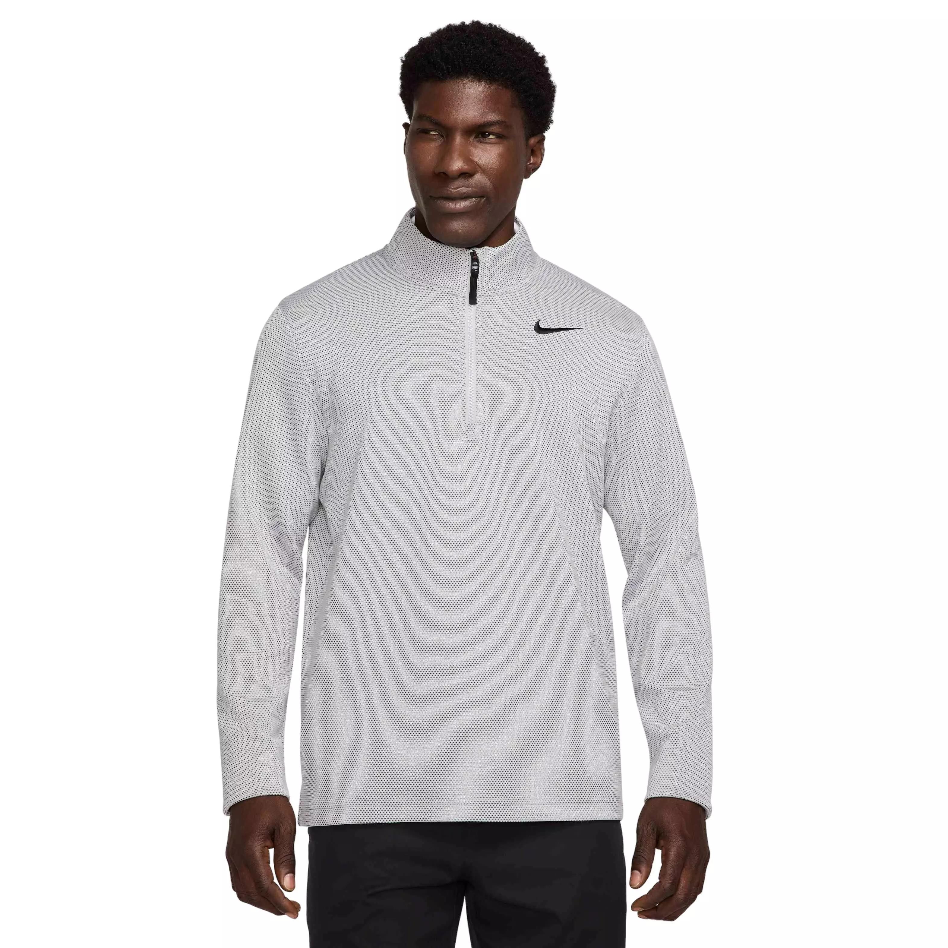 Dri-FIT technology moves perspiration away efficiently to keep you dry and focused. The half-zip opening enables quick adjustability when temperatures shift, and a streamlined fit supports fluid motion on the course.