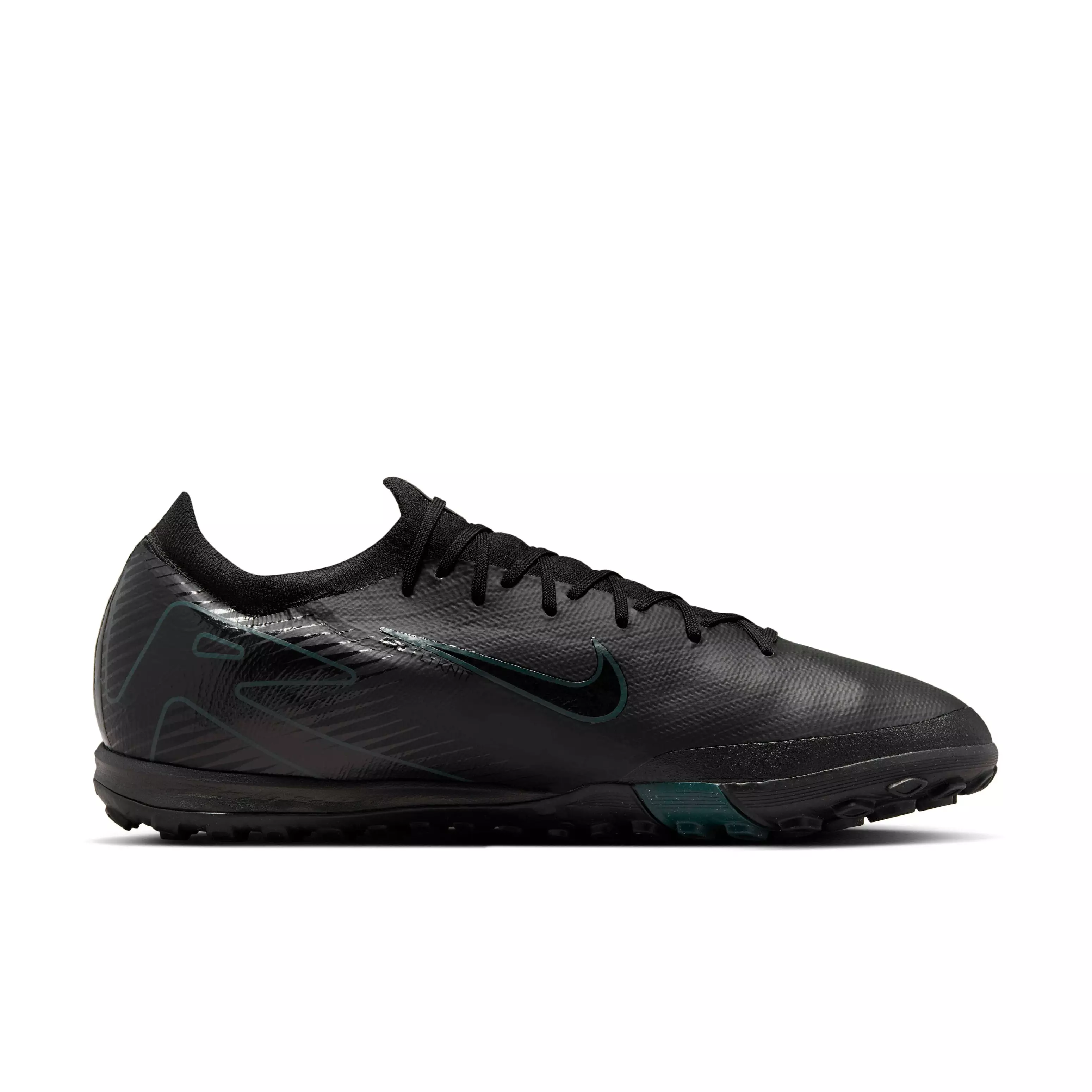 Serious about your speed? Nike Mercurial Vapor 16 Pro Turf "Black/Deep Jungle/Black" Men's Soccer Shoe are for those who want to push the pace all match long. That's why we made these with an improved Air Zoom unit. It gives you and those devoted to the game the propulsive feel needed to break through the back line. Take your skills to the next level with some of Nike’s greatest innovations like Flyknit on the upper, which makes the shoe even lighter so you can play fast.Features