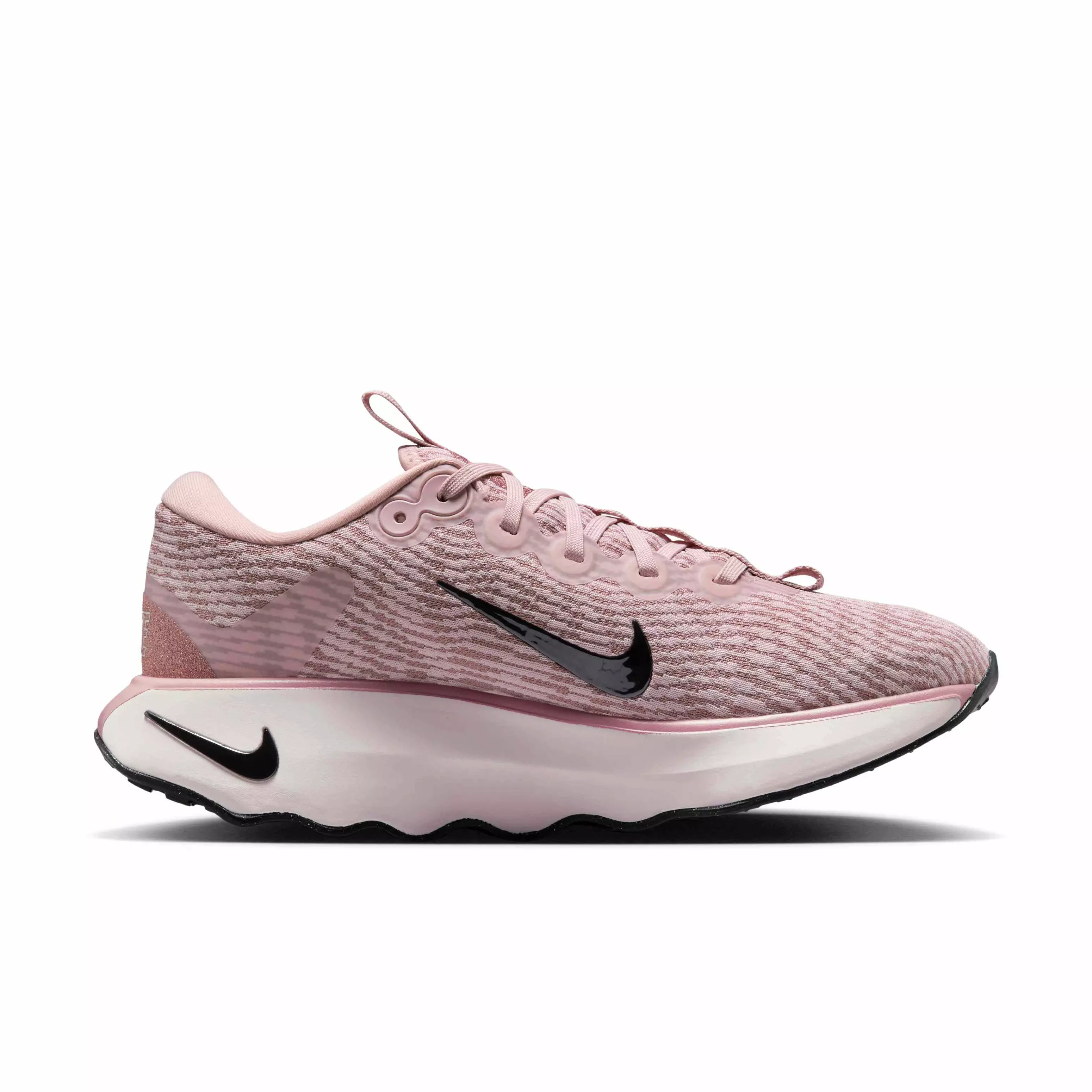 Designed for walking in ultimate comfort, the Nike Motiva "Pink Oxford/Particle Pink/Light Soft Pink/Anthracite" Women's Walking Shoe provides our highest level of cushioning. A tall foam stack combines with our Comfortgroove innovation on the outsole to absorb the bumps along the way. And its exaggerated rocker helps propel you forward.Features