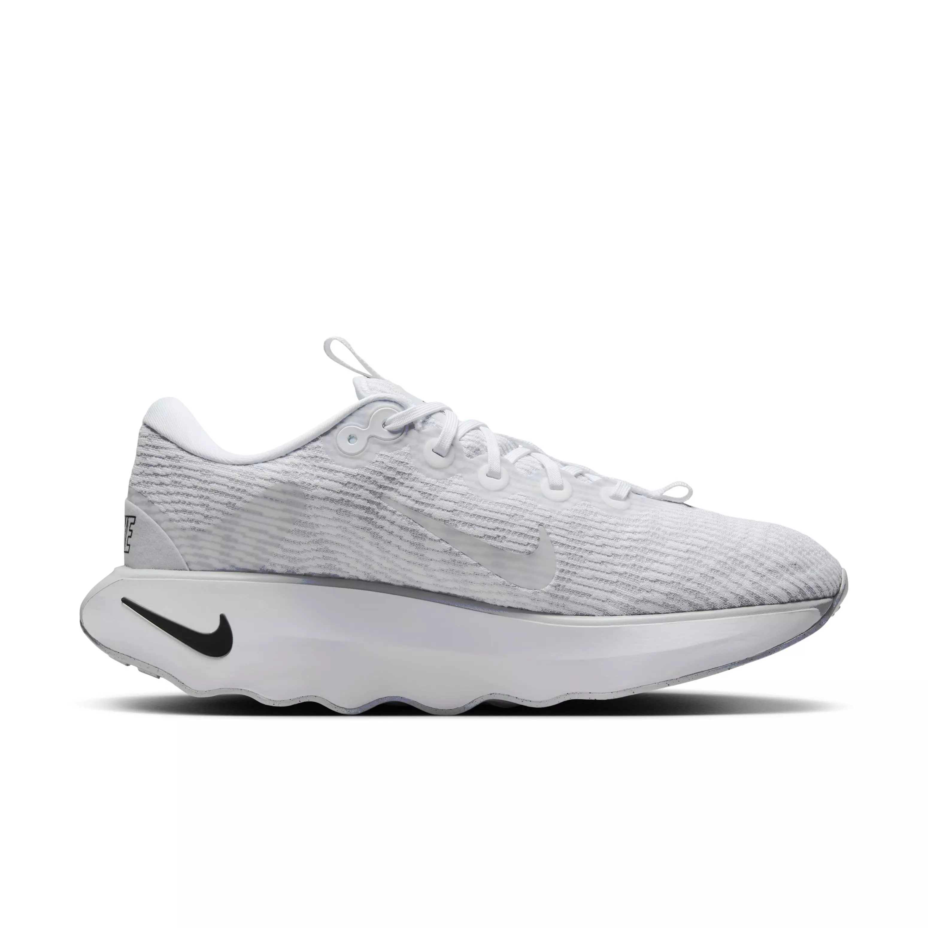 The Nike Motiva "White/Black/Pure Platinum/White" Men's Walking Shoe helps you step through whatever the day brings at your pace. Its uniquely patterned outsole and exaggerated rocker work together to deliver a super-smooth, cushioned, comfortable ride.