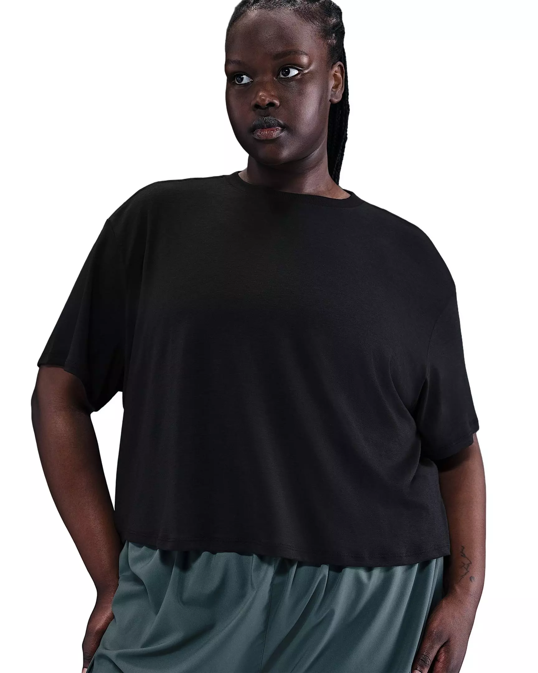 Nike One Women's Dri-FIT Relaxed Short Sleeve HH Top features a plus size cropped design and adapts to any routine. Its slightly textured, incredibly lightweight jersey fabric features Dri-FIT technology, delivers quick-dry performance and drapes you in comfort throughout the day.