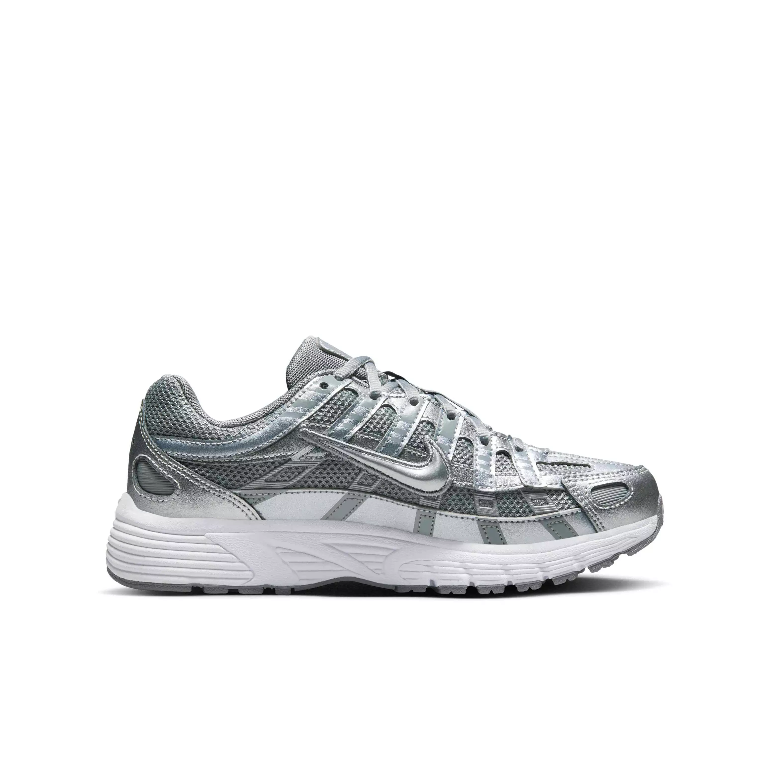 Inspired by retro Pegasus sneakers, the Nike P-6000 "Metallic Cool Grey/White/Wolf Grey/Cool Grey" Grade School Boys' Shoe puts a modern twist on early 2000s running style. Its performance roots give it a cushioned, springy ride, while sporty design lines and breathable textiles make for the perfect mix of head-turning looks and lightweight comfort.Features