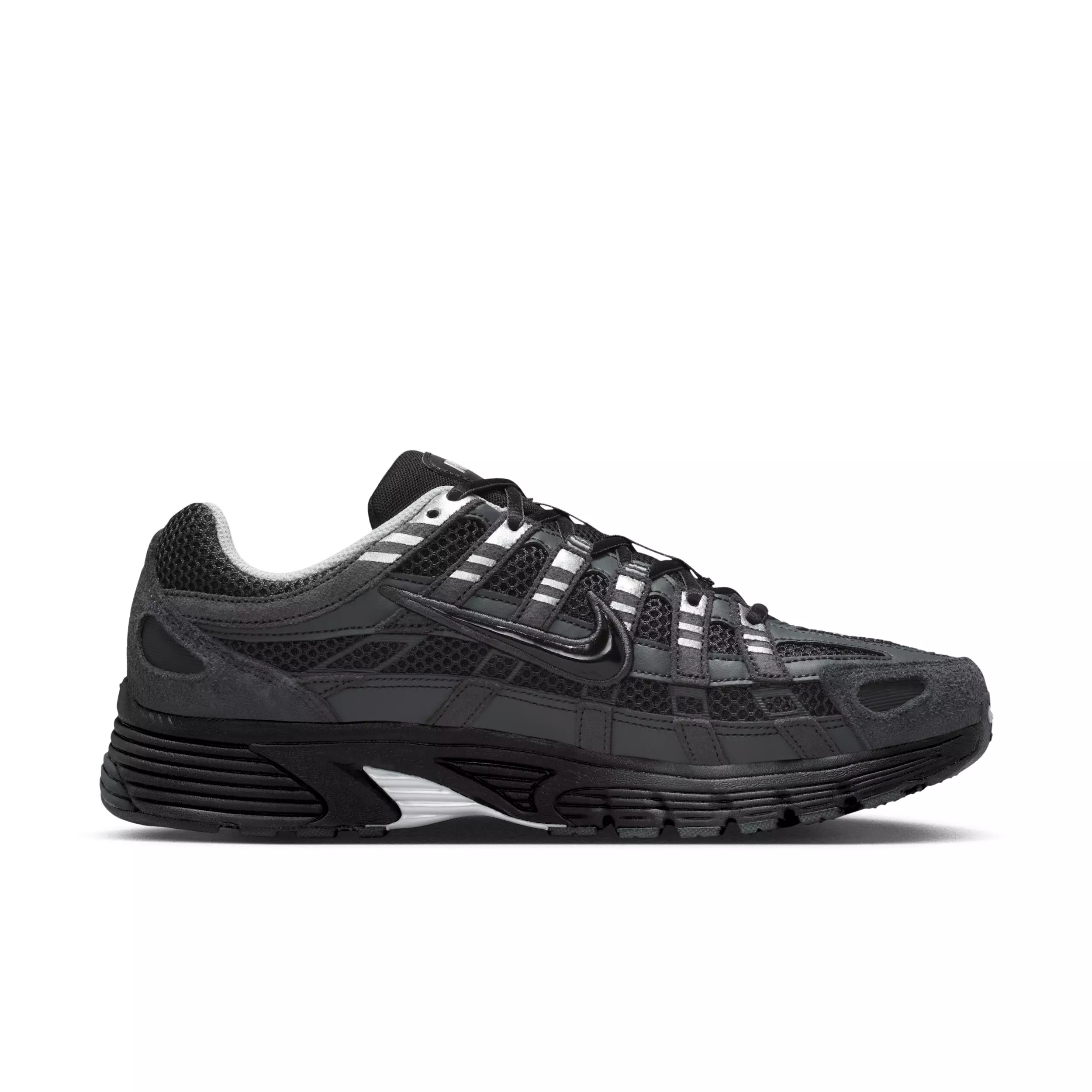 A mash-up of past Pegasus sneakers, the Nike P-6000 Suede "Anthracite/Chrome/Metallic Silver/Black" Men's Shoe takes early 2000s running to modern heights. It mixes leather, textile and suede for a layered look built to last. Plus, its foam cushioning adds a lifted, track-inspired stance and unbelievable comfort. This version is part of the Bowerman series—a collection honoring the legacy of Coach Bill Bowerman.Features