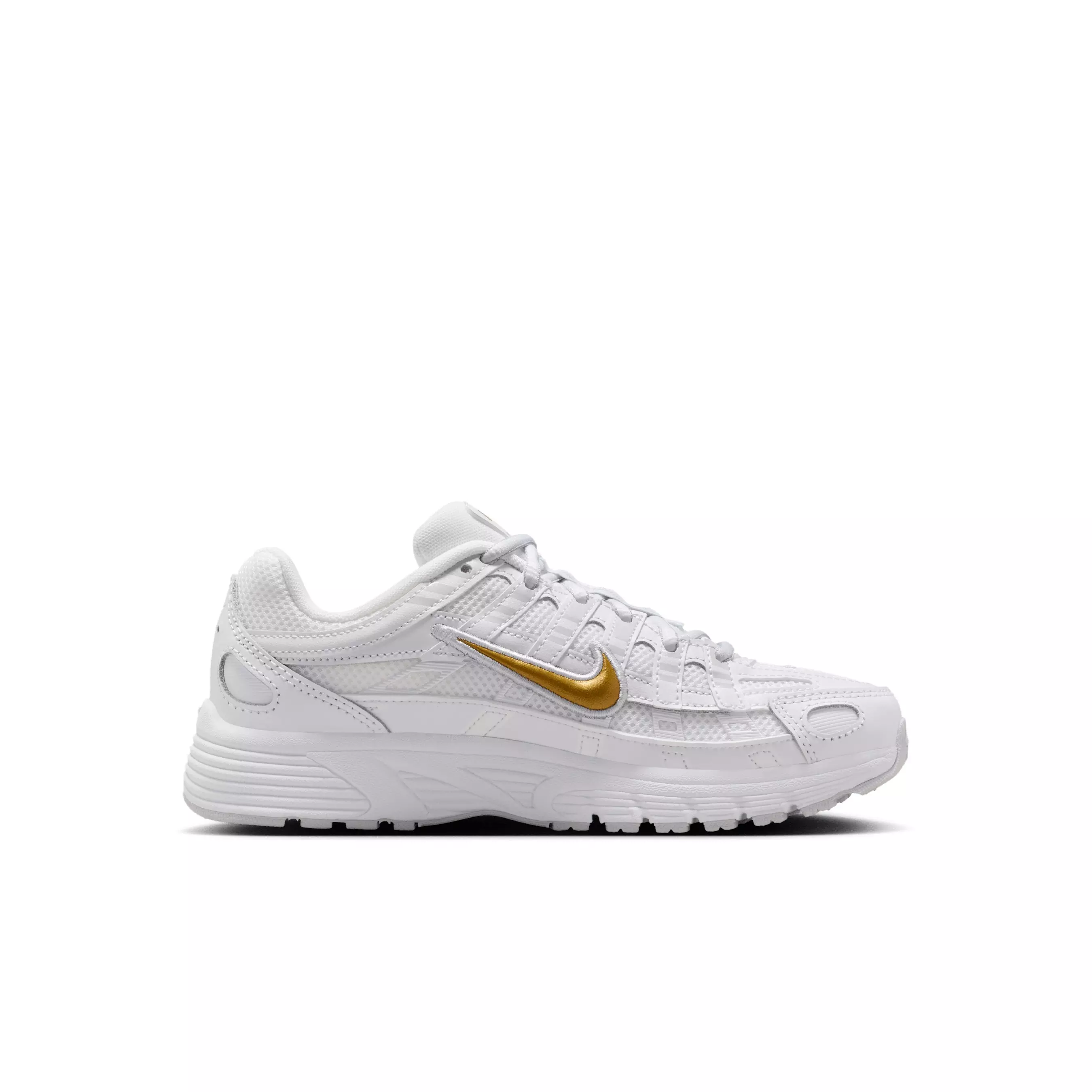 Inspired by retro Pegasus sneakers, the Nike P-6000 "White/Pure Platinum/Metallic Gold" Preschool Girls' Shoe puts a modern twist on early 2000s running style. Its performance roots give it a cushioned, springy ride, while sporty design lines and breathable textiles make for the perfect mix of head-turning looks and lightweight comfort.Features