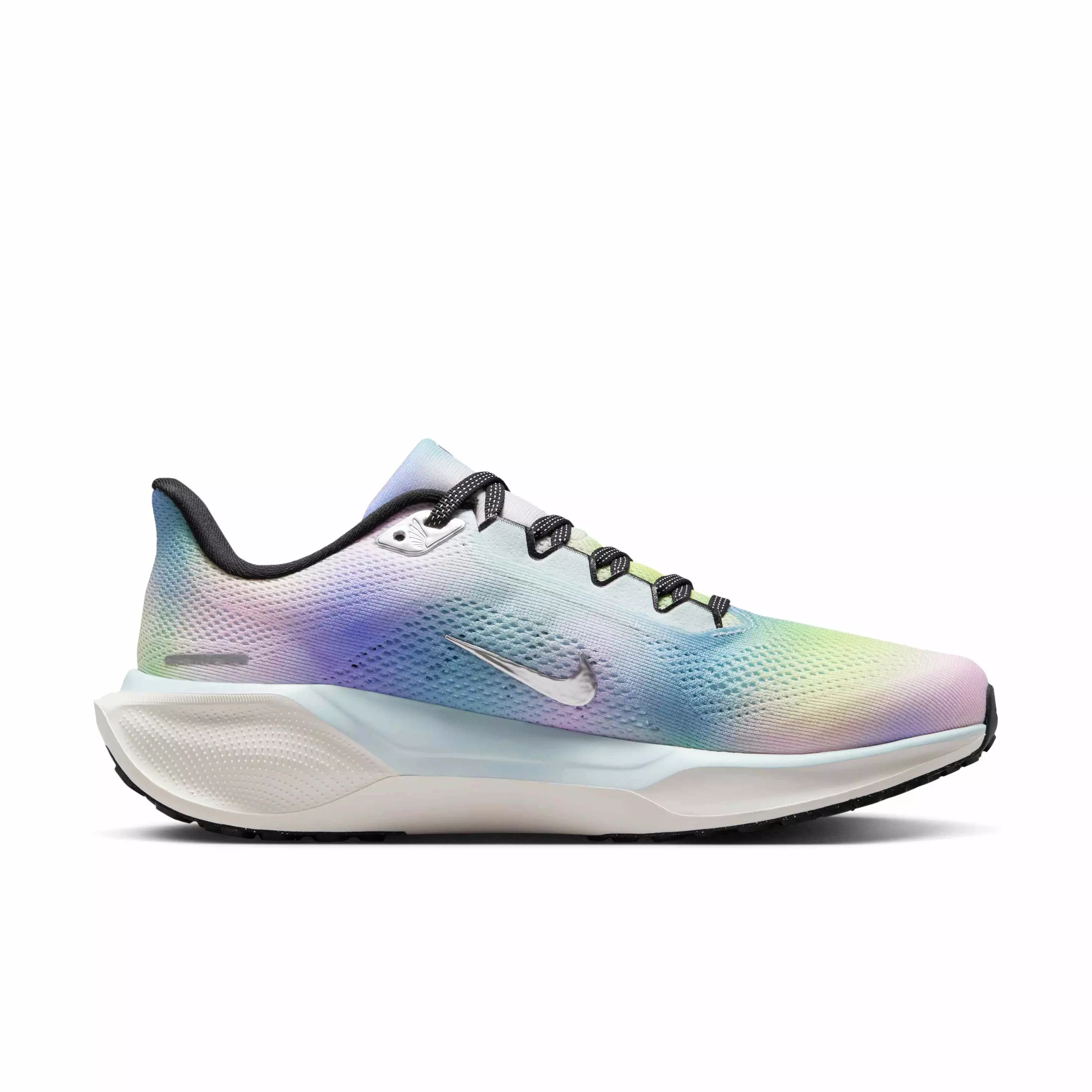 Nike Pegasus 41 SE "Glacier Blue/Black/Phantom/Metallic Silver" Women's Running Shoe balances responsive cushioning with an energized ride on everyday roads. Dual Air Zoom units and a ReactX foam midsole deliver lighter-weight energy return.