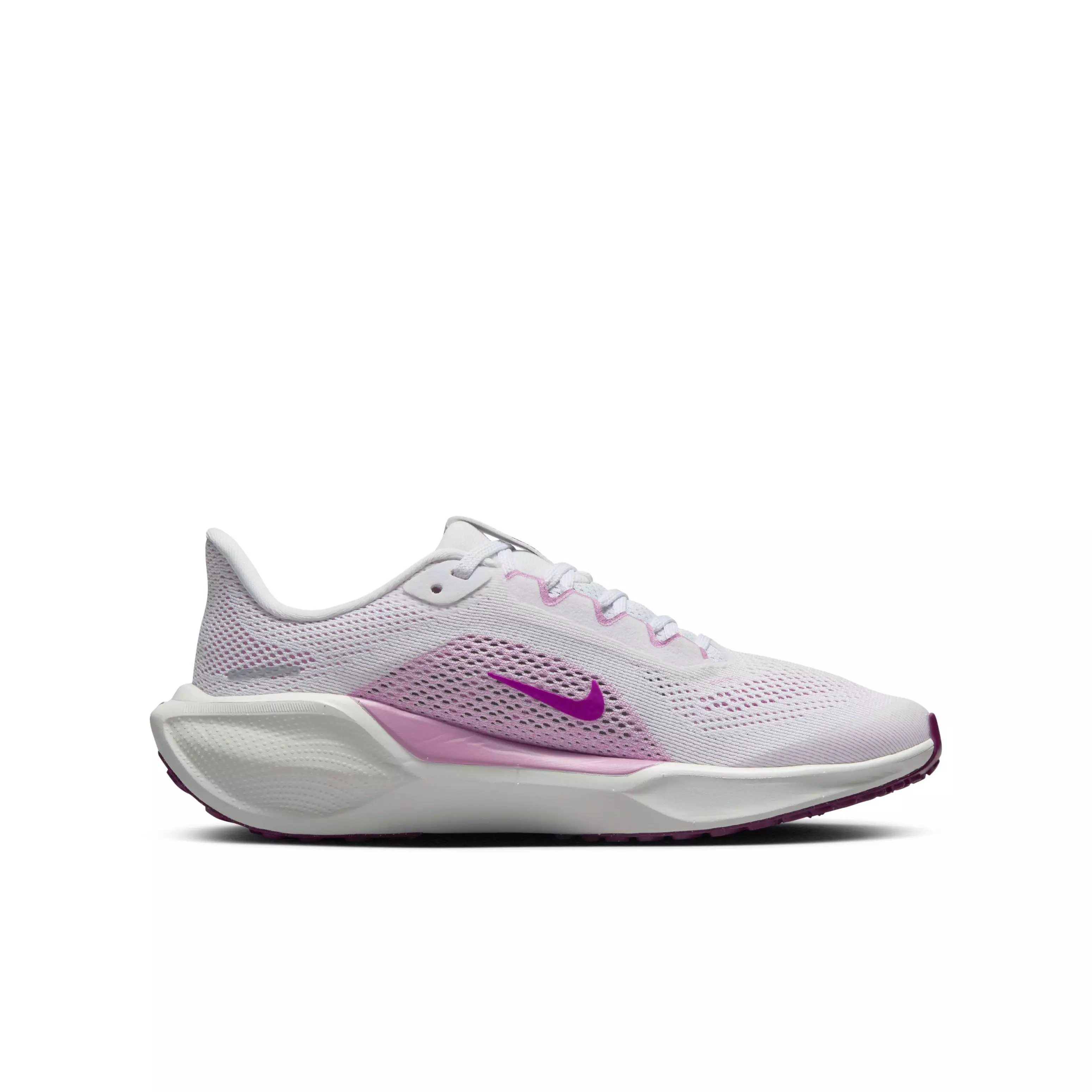 It's not always the distance you remember after a run but how you felt while running it. With this in mind, we designed the Nike Pegasus 41 "White/Black/Beyond Pink/Hyper Violet" Grade School Girls' Running Shoe to help make your miles feel soft and springy, allowing you to focus on your pace and technique—not your shoes. A lightweight, breathable upper helps make them comfortable, whether you're sprinting in a 200-meter race or going for a long, casual weekend run.Features