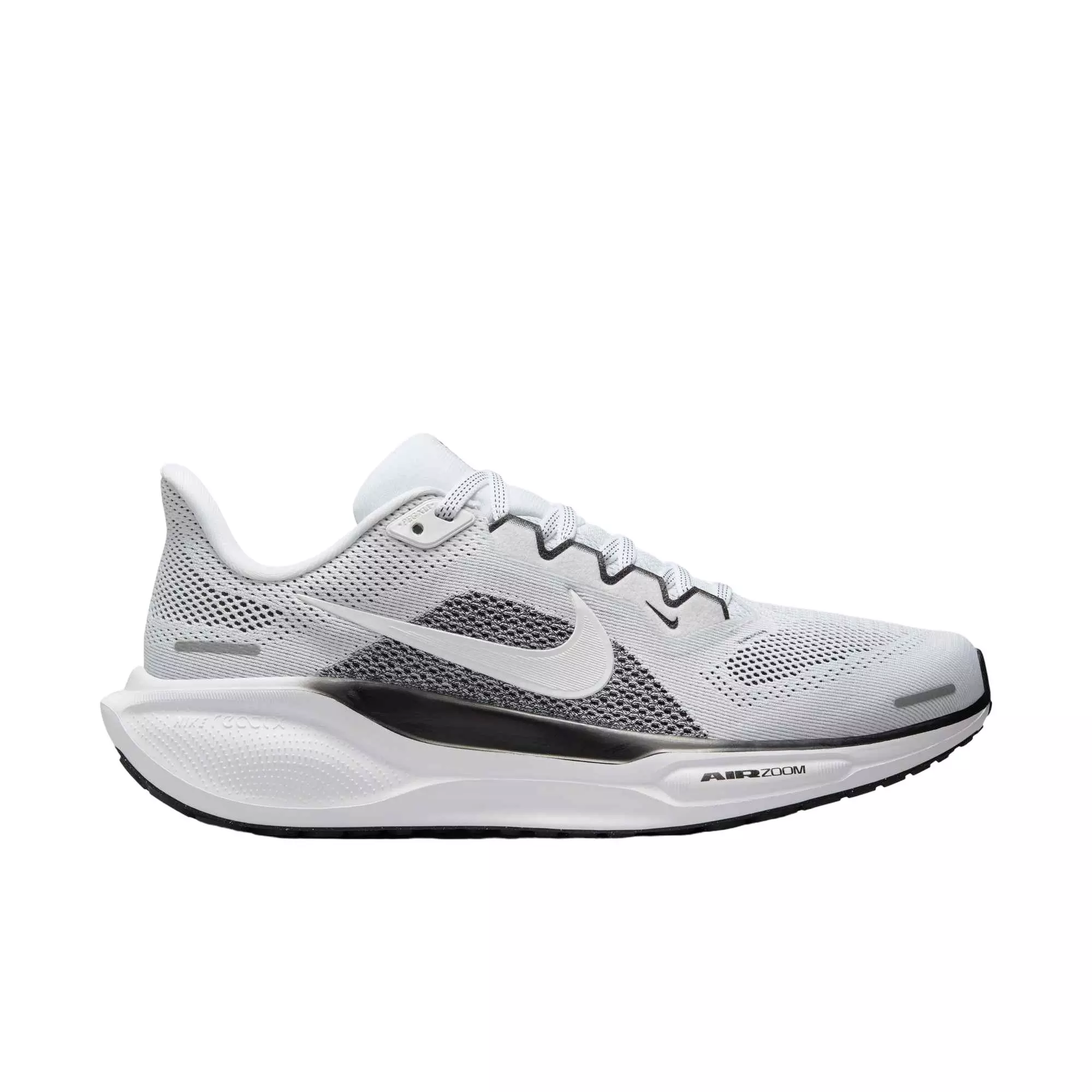 Responsive cushioning in the Nike Pegasus 41 "White/White/Black" Women's Running Shoe provides an energized ride for everyday road running. Experience lighter-weight energy return with dual Air Zoom units and a ReactX foam midsole. Plus, improved engineered mesh on the upper decreases weight and increases breathability.Features