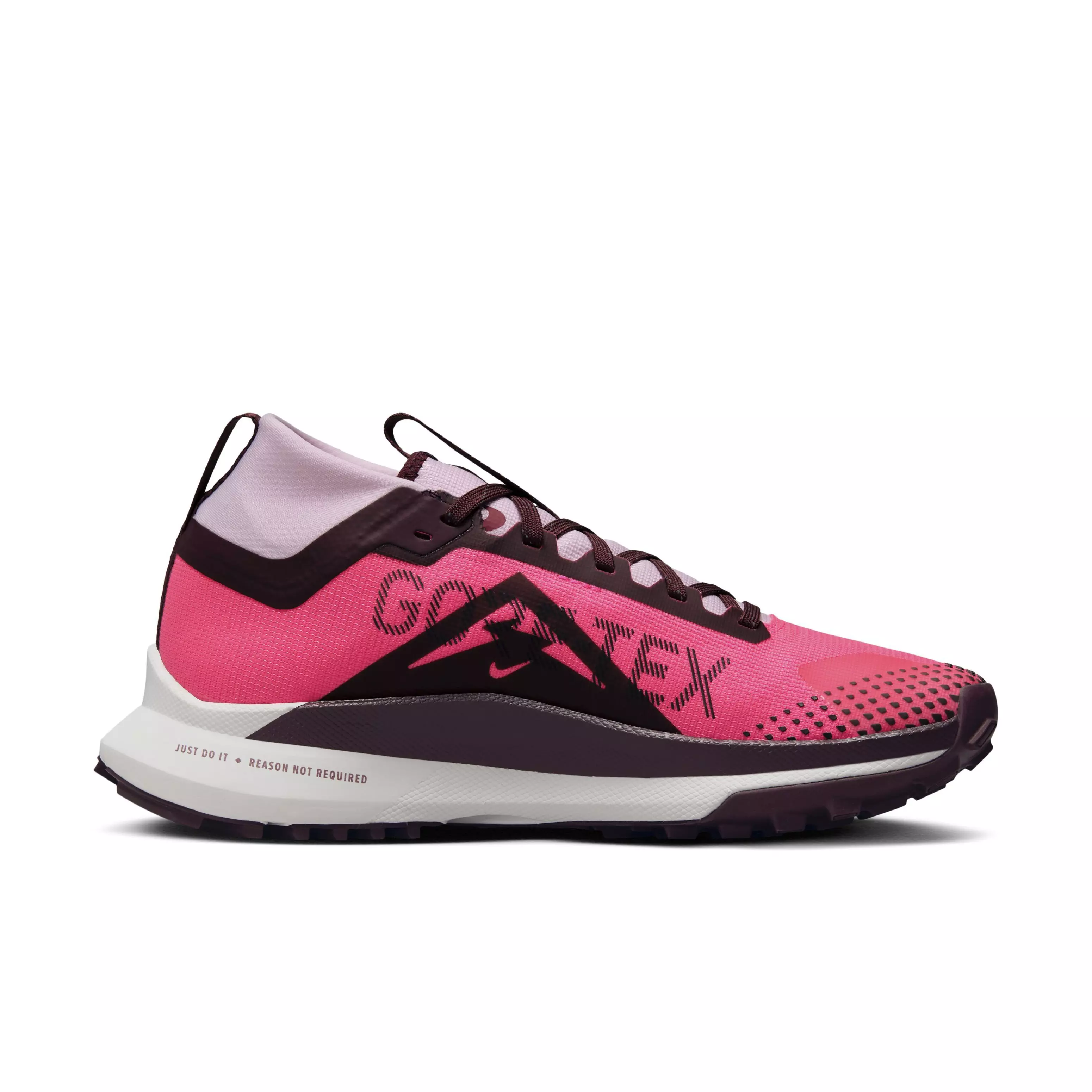 Wet weather never stopped you before, why should it stop you now? Meet your new go-to running companion for days when the weather turns with Nike Pegasus Trail 4 GORE-TEX "Hyper Pink/Burgundy Crush/Team Red" Women's Trail Running Shoe. A flexible, lightweight design and responsive cushioning let you take your run from the road to the trail without breaking stride. Plus, a waterproof GORE-TEX layer and ankle gaiter help keep your feet dry so you're free to run through whatever puddles lie in your path.Features