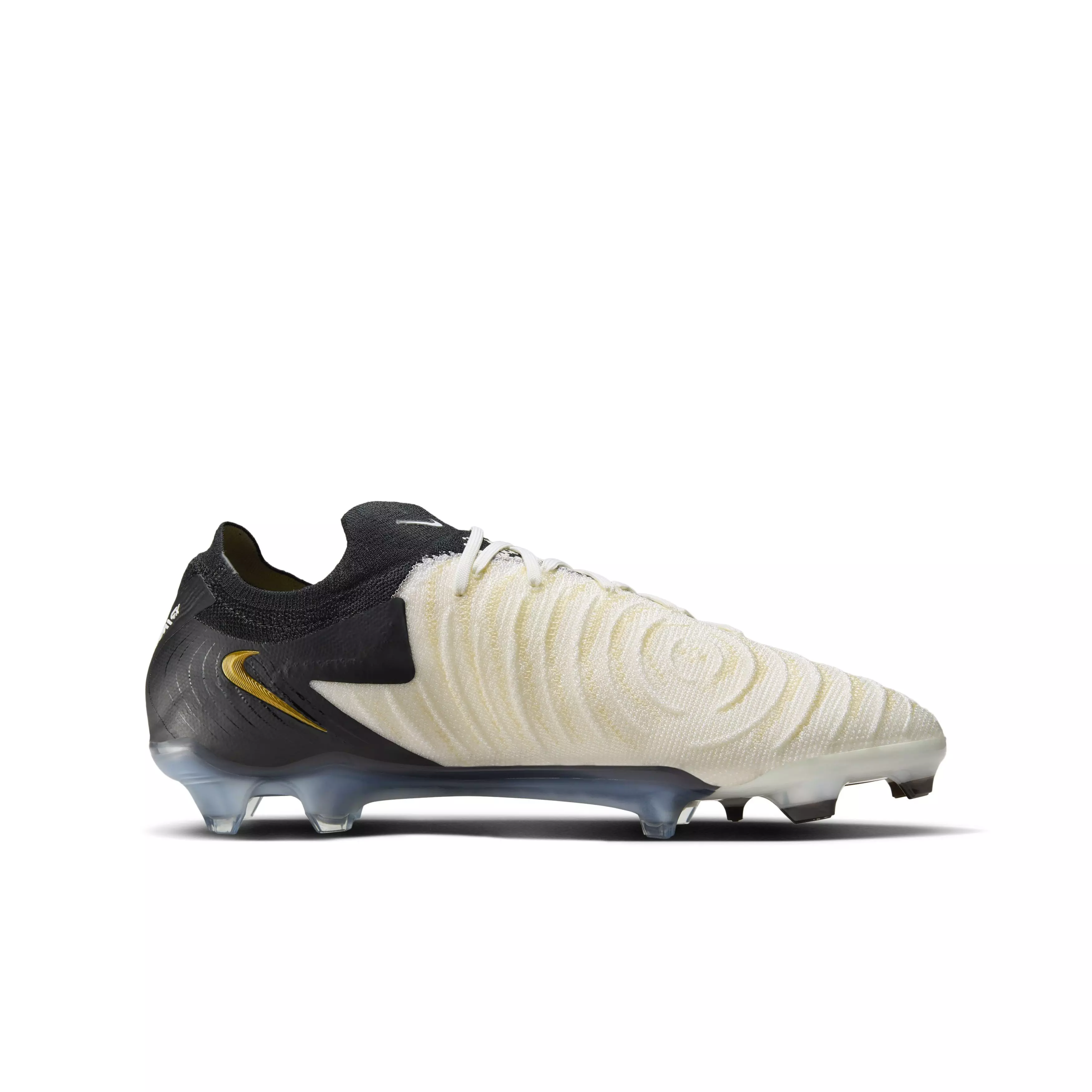 Obsessed with perfecting your craft? We made this for you. In the middle of the storm, with chaos swirling all around you, you’ve calmly found the final third of the field, thanks to your uncanny mix of on-ball guile and grace. Go finish the job in the Nike Phantom GX 2 Elite FG "White/Metallic Gold Coin/Black" Grade School Kids' Soccer Cleat. We design Elite cleats for you and the world’s biggest stars to give you high-level quality, because you demand greatness from yourself and your footwear.Features