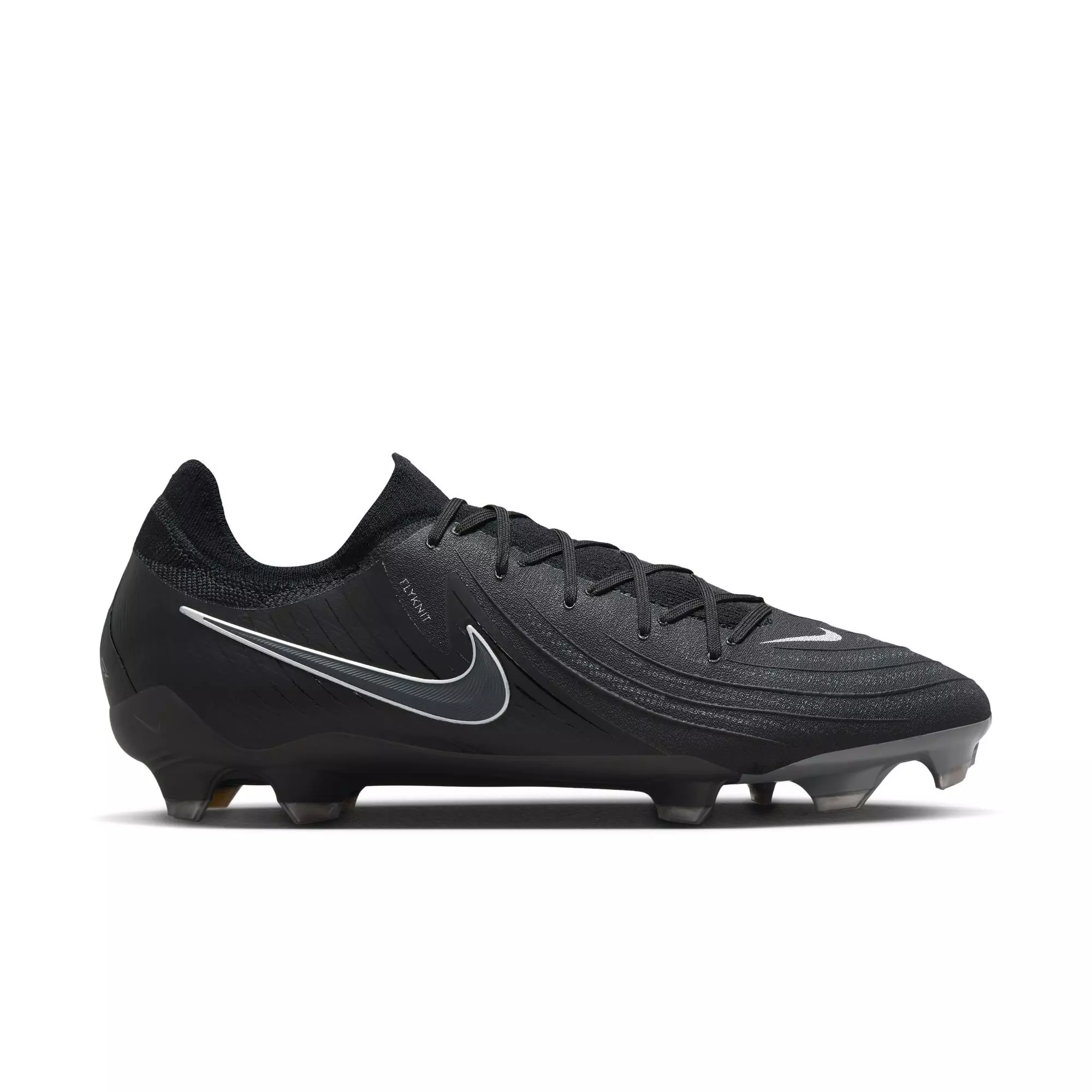 Serious about your game? We made this for you. In the middle of the storm, with chaos swirling all around you, you’ve calmly found the final third of the field, thanks to your uncanny mix of on-ball guile and grace. Go finish the job in the Nike Phantom GX 2 Pro FG "Black" Men's Soccer Cleat. Take your skills to the next level with some of Nike’s greatest innovations, like a stretchy Flyknit upper and Nike Cyclone 360 traction helping guide your unscripted agility.Features