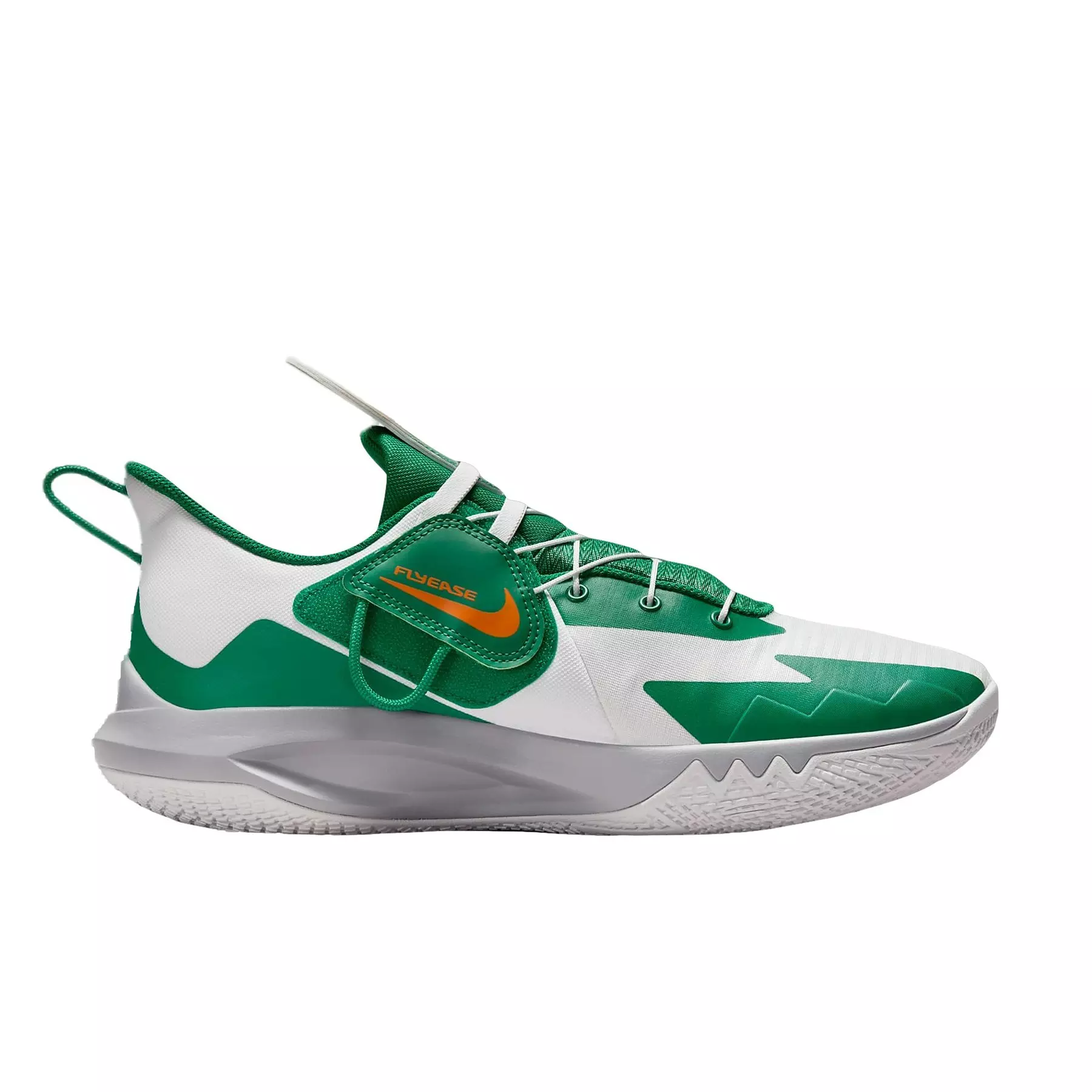 Create space, stop on a dime, shoot off the dribble in the Nike Precision 6 FlyEase "White/Malachite/Sundial/Safety Orange" Men's Basketball Shoe—a game-ready basketball shoe for everyone. The large midfoot strap lets you tighten the laces and secure the fit using 1 hand. The performance design enables players to shift speeds and change directions while staying in control and pushing the tempo.Features