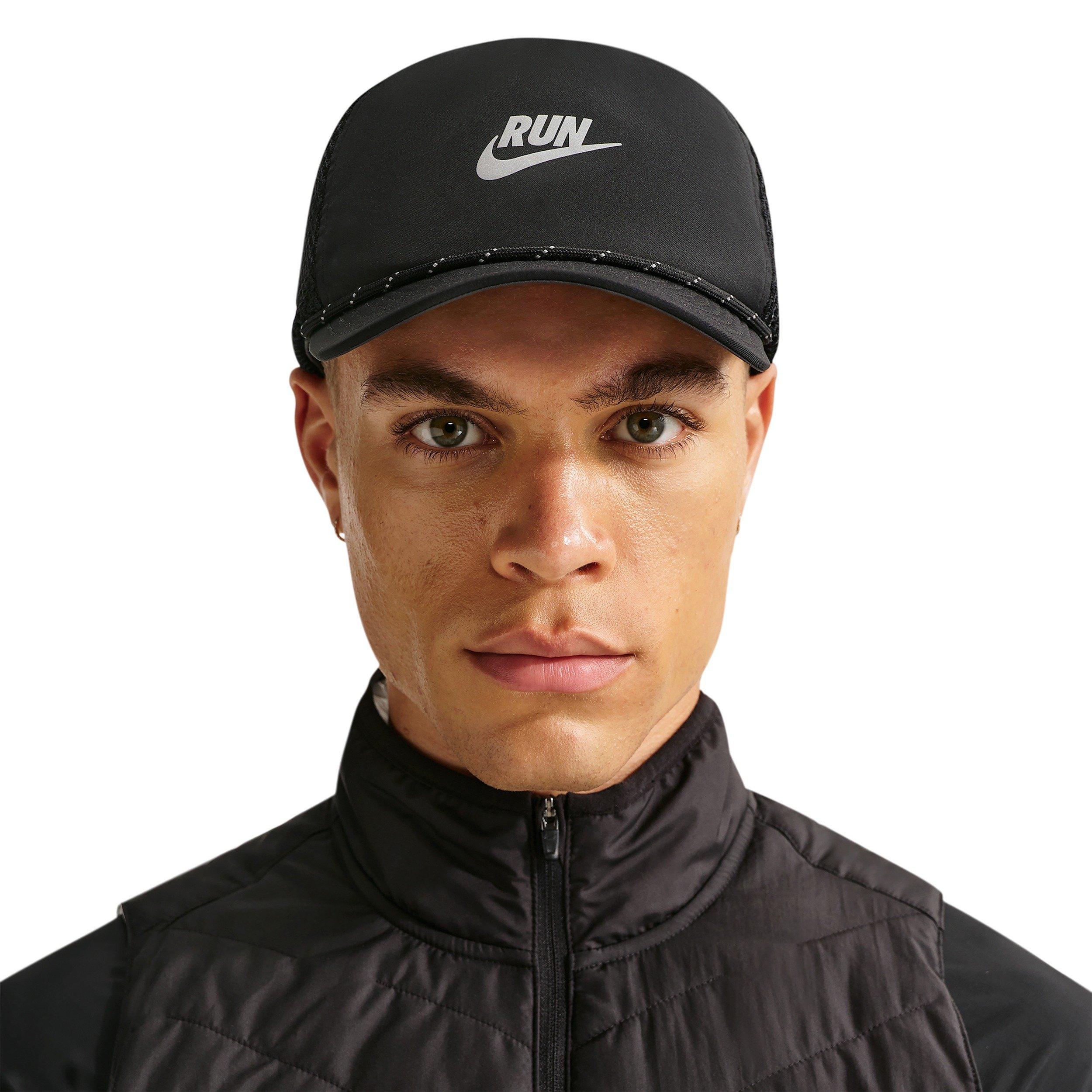 Find your pace in this breathable Nike Pro Dri-FIT Unstructured Swoosh Run Hat. Flexible sweat-wicking fabric at the front meets lightweight mesh at the back for optimal airflow. Its max depth and reflective bungee closure gives you a comfortable fit that goes for miles.Features