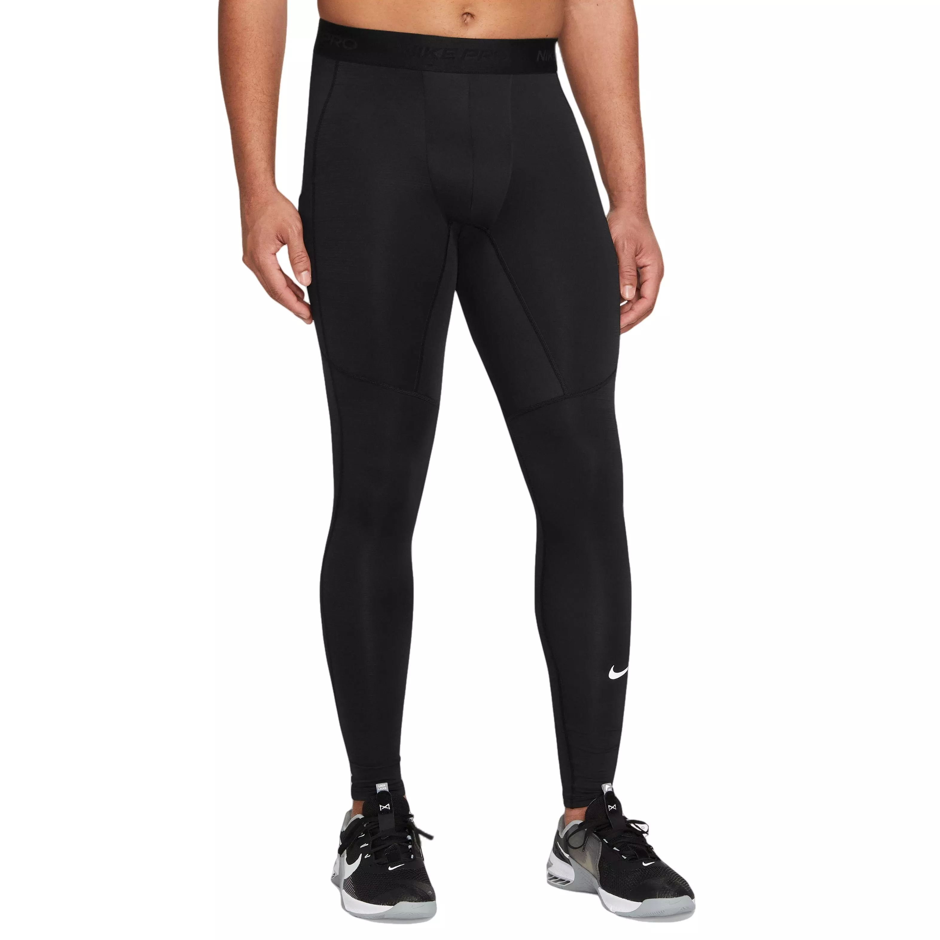 The Nike Pro Warm Compression Leggings-Black use soft, stretchy French terry fabric that traps warmth and wicks sweat to keep you dry. Breathable mesh panels around each knee enhance airflow and mobility. These full-length tights deliver support and comfort in cold conditions. Wear them alone to showcase the fit or underneath gym shorts when intensity rises.