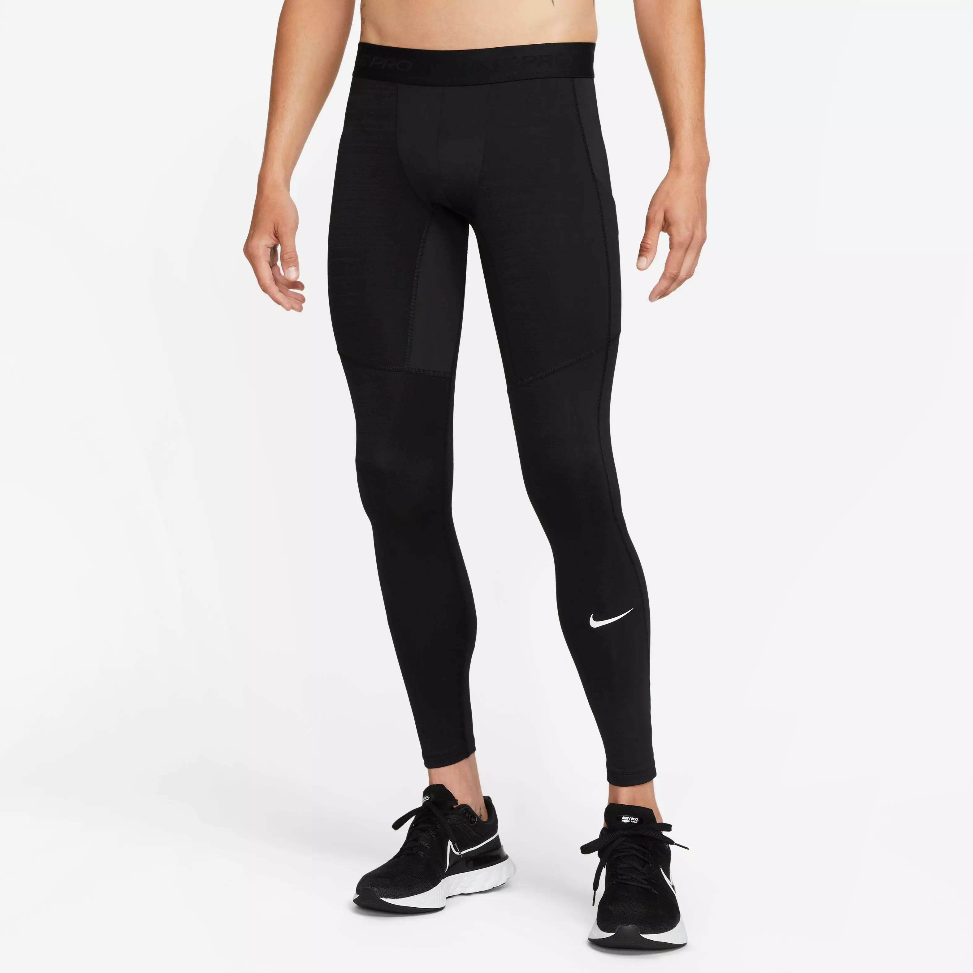 The Nike Pro Warm Compression Leggings-Black use soft, stretchy French terry fabric that traps warmth and wicks sweat to keep you dry. Breathable mesh panels around each knee enhance airflow and mobility. These full-length tights deliver support and comfort in cold conditions. Wear them alone to showcase the fit or underneath gym shorts when intensity rises.