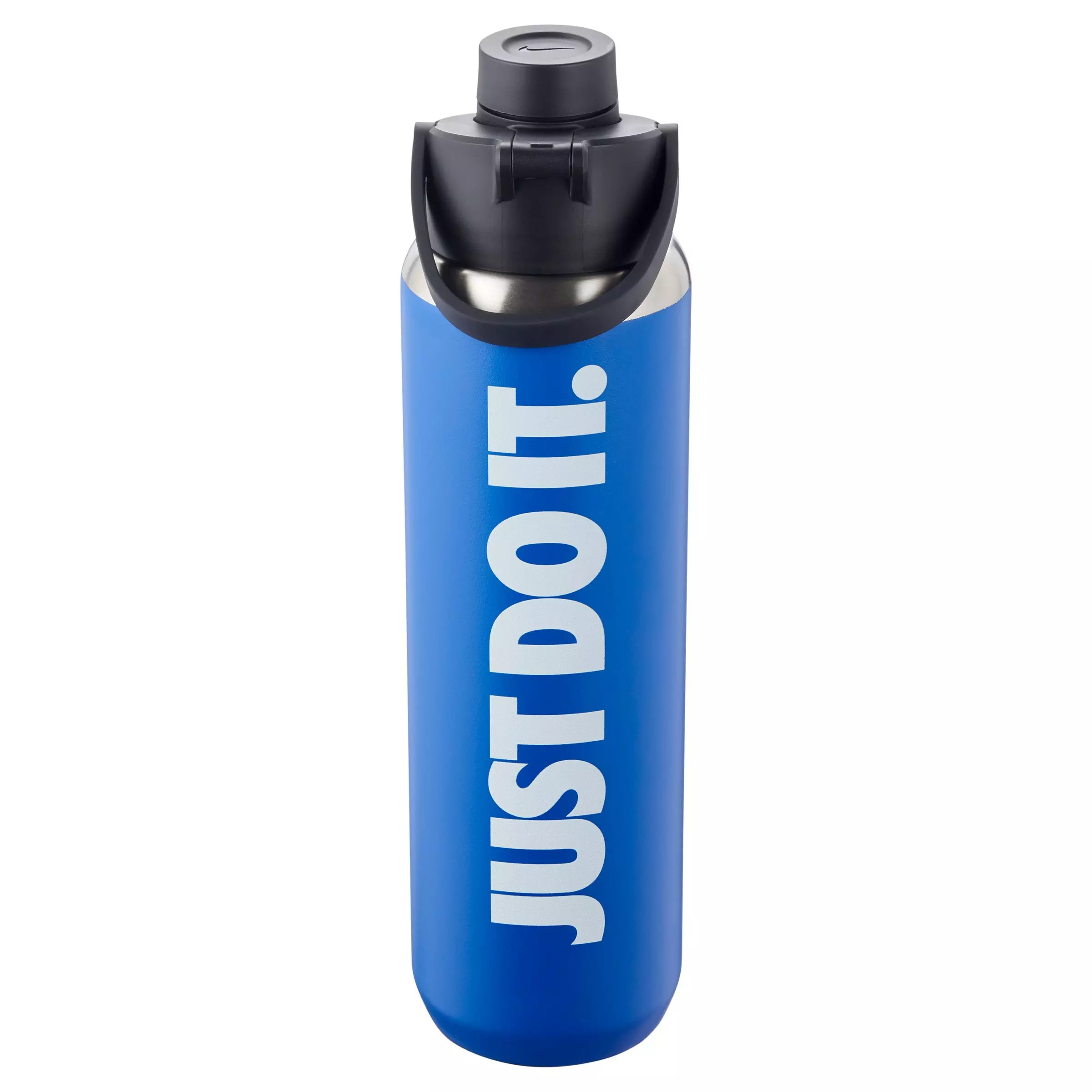 Staying hydrated is crucial to your game. Holding 24 ounces of cold liquid, this Nike 24oz Recharge Stainless Steel Chug Water Bottle features a vacuum-insulated inside to keep your drink chilled. An easy-to-hold shape and a twist off, soft loop handle lid make it both easy to grab and easy to drink from.Features