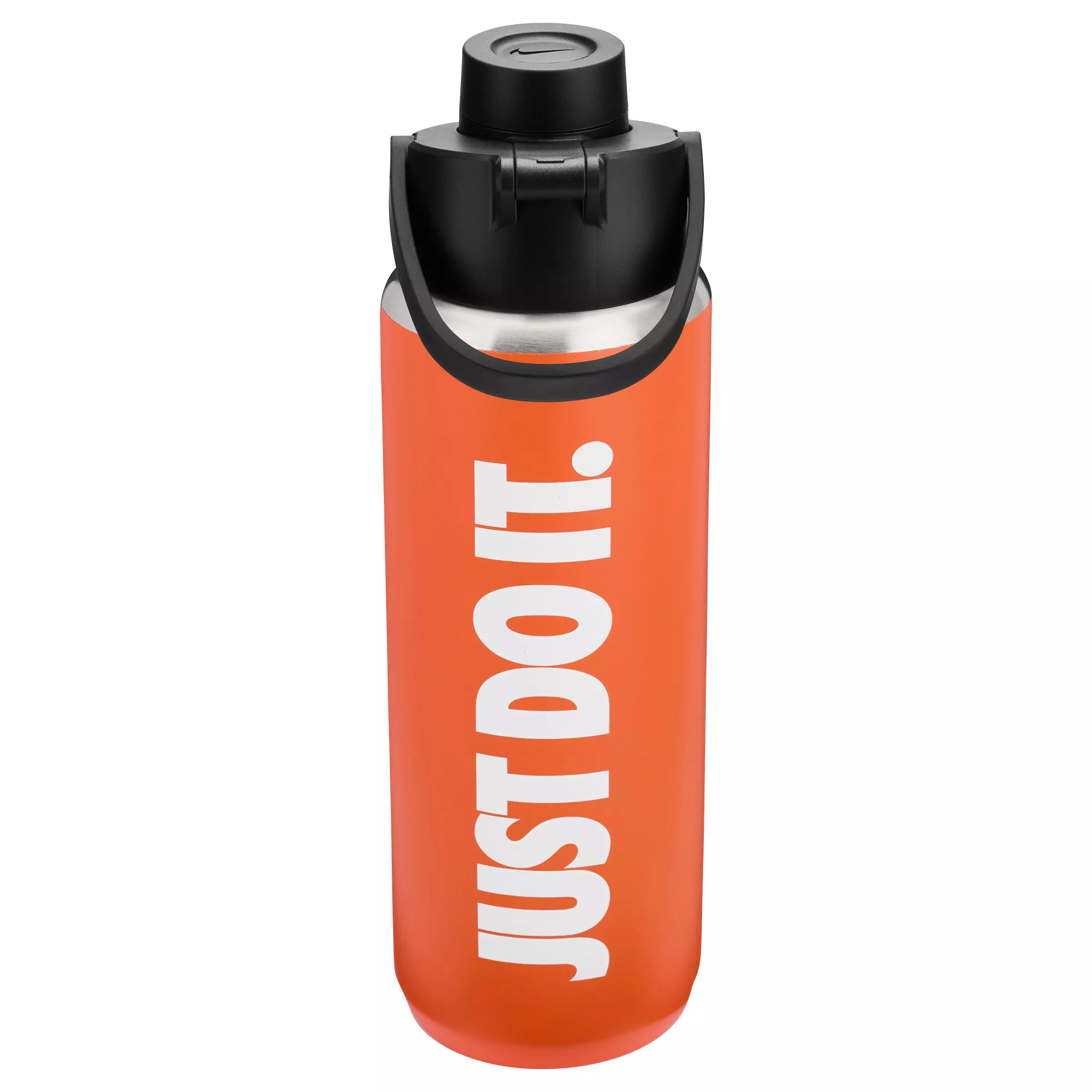 Staying hydrated is crucial to your game. Holding 24 ounces of cold liquid, this Nike 24oz Recharge Stainless Steel Chug Water Bottle features a vacuum-insulated inside to keep your drink chilled. An easy-to-hold shape and a twist off, soft loop handle lid make it both easy to grab and easy to drink from.Features