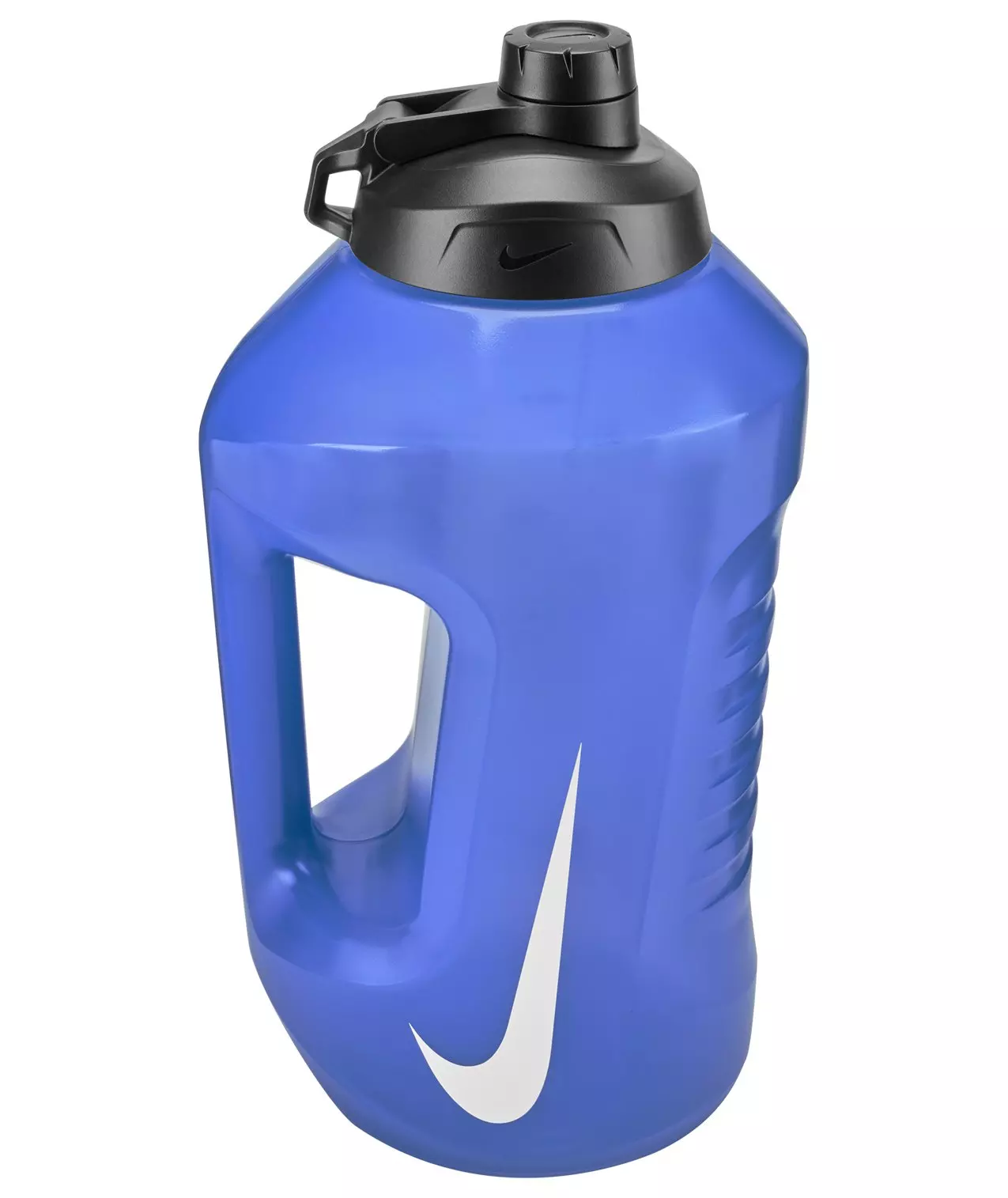 What makes this jug super? The fact that it can hold up to a gallon of your favorite liquid, allowing you to spend more time hydrating and less time refilling. A molded handle and durable clip help make lugging this Nike Super Jug 128 oz Refresh-Royal/Black around a breeze while a twist-off cap allows for easy opening and drinking. Plus. we added measurements on the side to help you track your hydration.Features