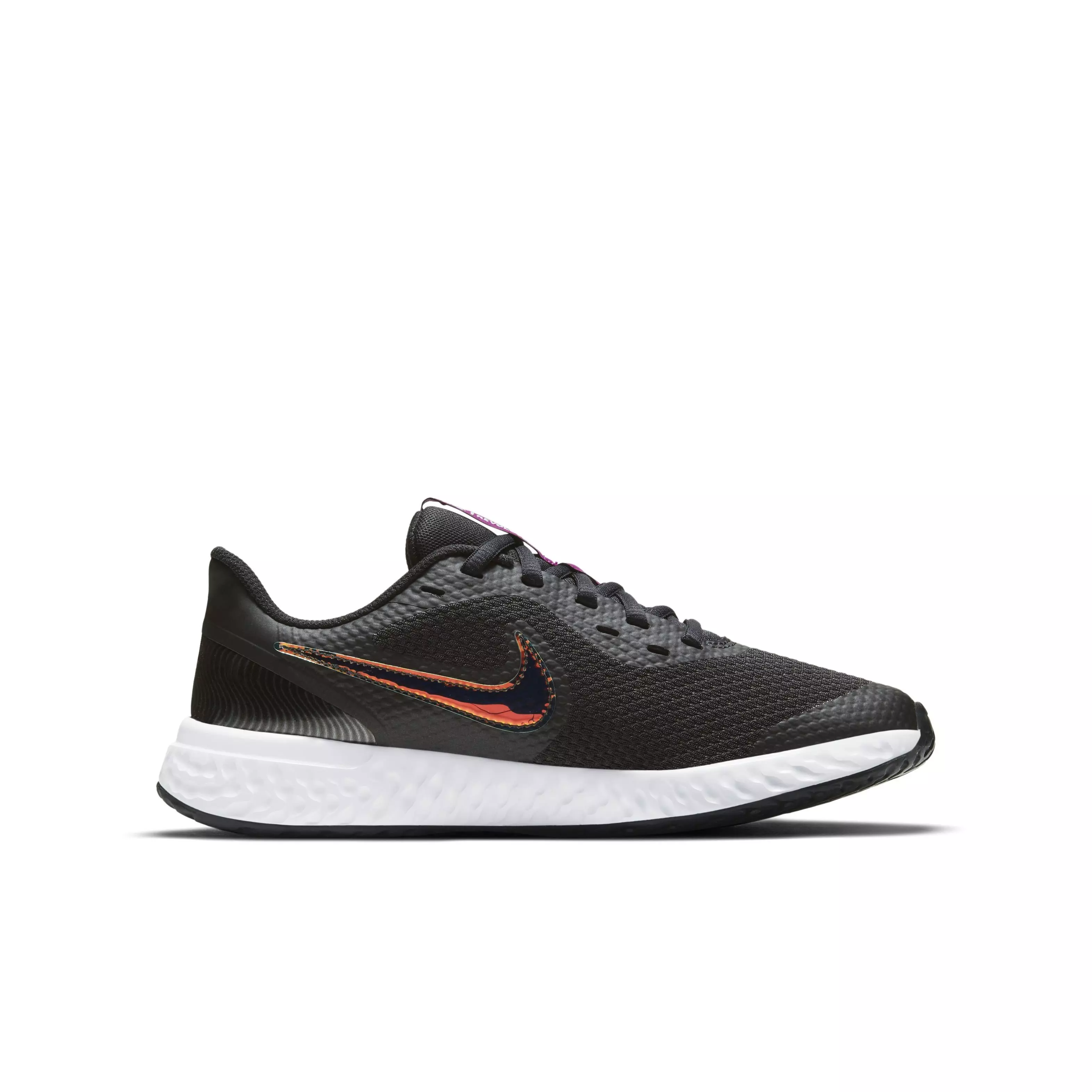 Fun fact: The more you move, the more fun you have in the Nike Revolution 5 Power "Black" Grade School Boys' Running Shoe. Watch the Swoosh shift colors at every step and stride you take. With awesome cushioning and traction, you can keep going and going.Features