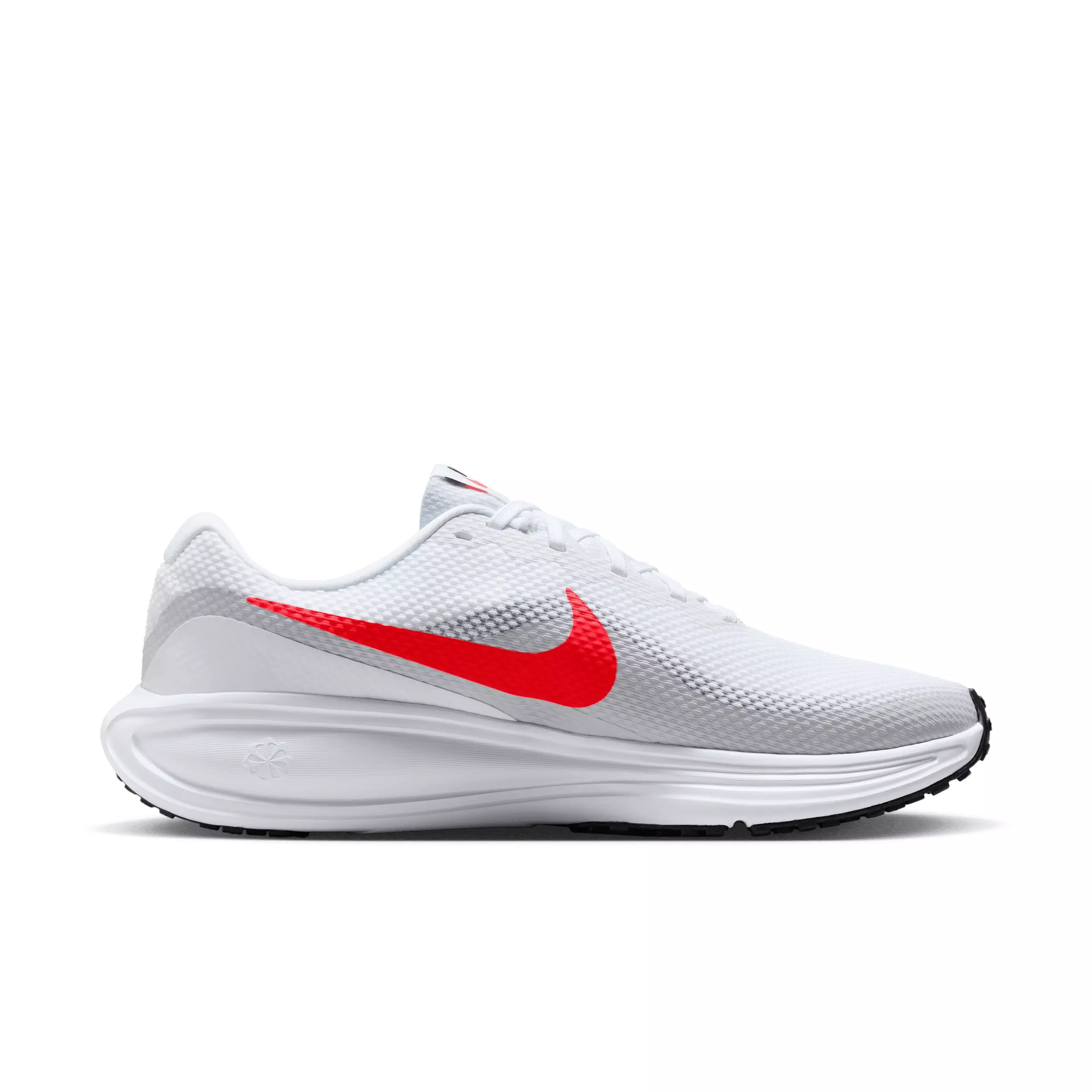 The Nike Revolution 8 "White/Pure Platinum/Black/Bright Crimson" Men's Wide Running Shoe is an evolution of your faithful favorite. Every stride is cushioned thanks to a foam midsole and a flexible forefoot that makes your steps soft. Plus, the mesh upper is even more breathable than the previous iteration, so you can run in cool, collected comfort.