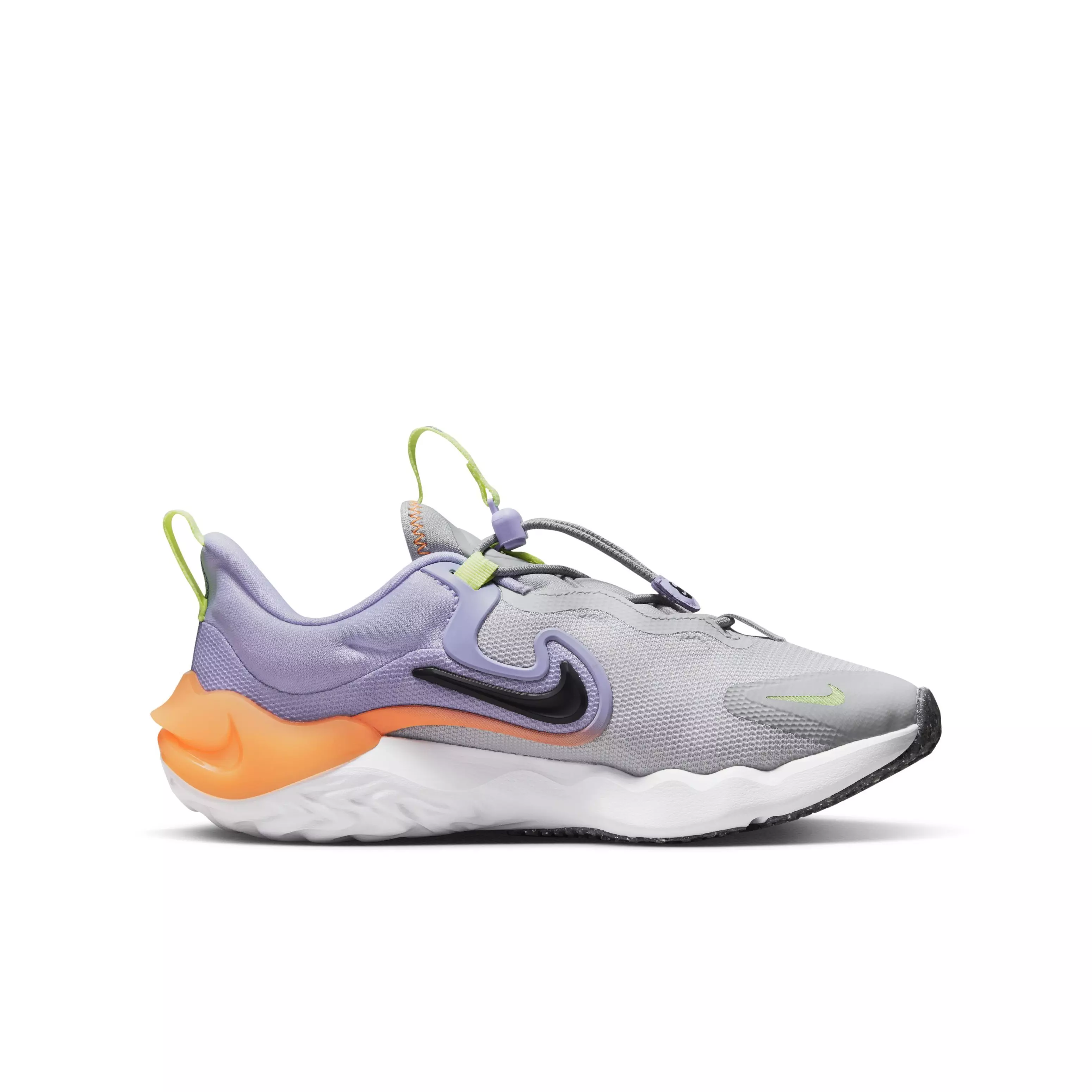 Are you a kid who likes to run the moment you get out of bed? Whether it's heading to school, recess or favorite afternoon activities, you know how much fun running is. The Nike Run Flow "Photon Dust/Black/Purple Pulse" Grade School Girls' Running Shoe helps you do all that with supersoft and responsive cushioning underfoot. This lightweight and breathable shoe also has easy-to-use toggle lacing so you can get out the door fast because why does fun have to wait?Features
