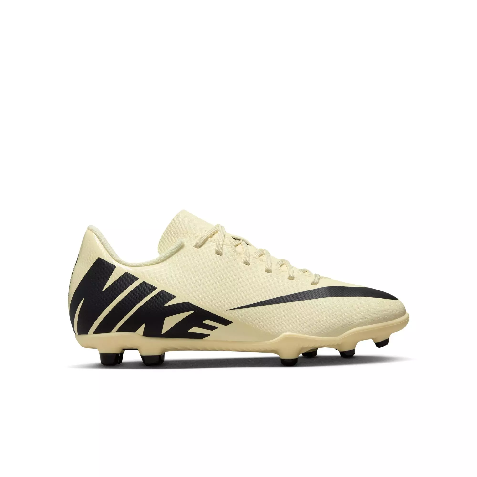 FAST FOR THE FIELD.Learn all the skills and drills, and use them in your next game with the Nike Sam Kerr Jr. Mercurial Vapor 15 Club "Lemonade/Black" Grade School Kids' Soccer Cleat. Made for all different surfaces from artificial to real grass fields, they have the traction you need to move and run up the field. The durable design is meant to hold up through every practice and every minute on game day.